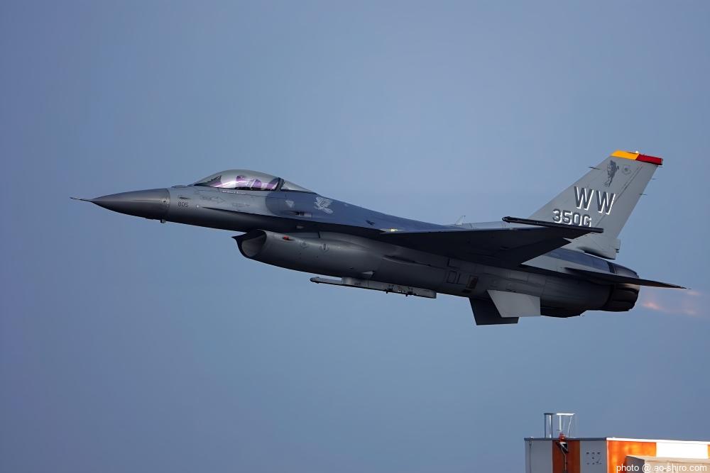 低高度で機体を大きく捻って離陸するF-2A(ロクスコ)