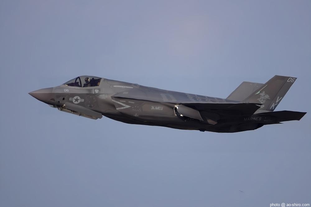 大好きなF-2Aの写真をたくさん撮れて気分上々で引き揚げようとしていたとき、さらなる幸運に巡り合えた。米軍岩国基地所属のF-35B戦闘機 ” ライトニングⅡ ” が離陸する場面を撮ることができたのだ。この年の5月に開催された岩国基地航空祭「日米親善フレンドシップデー」でF-35Bの飛行展示を見る(撮る)ことができていたが、築城基地でこのようなチャンスがあるとは夢にも思っていなかった。本当にラッキーだった。