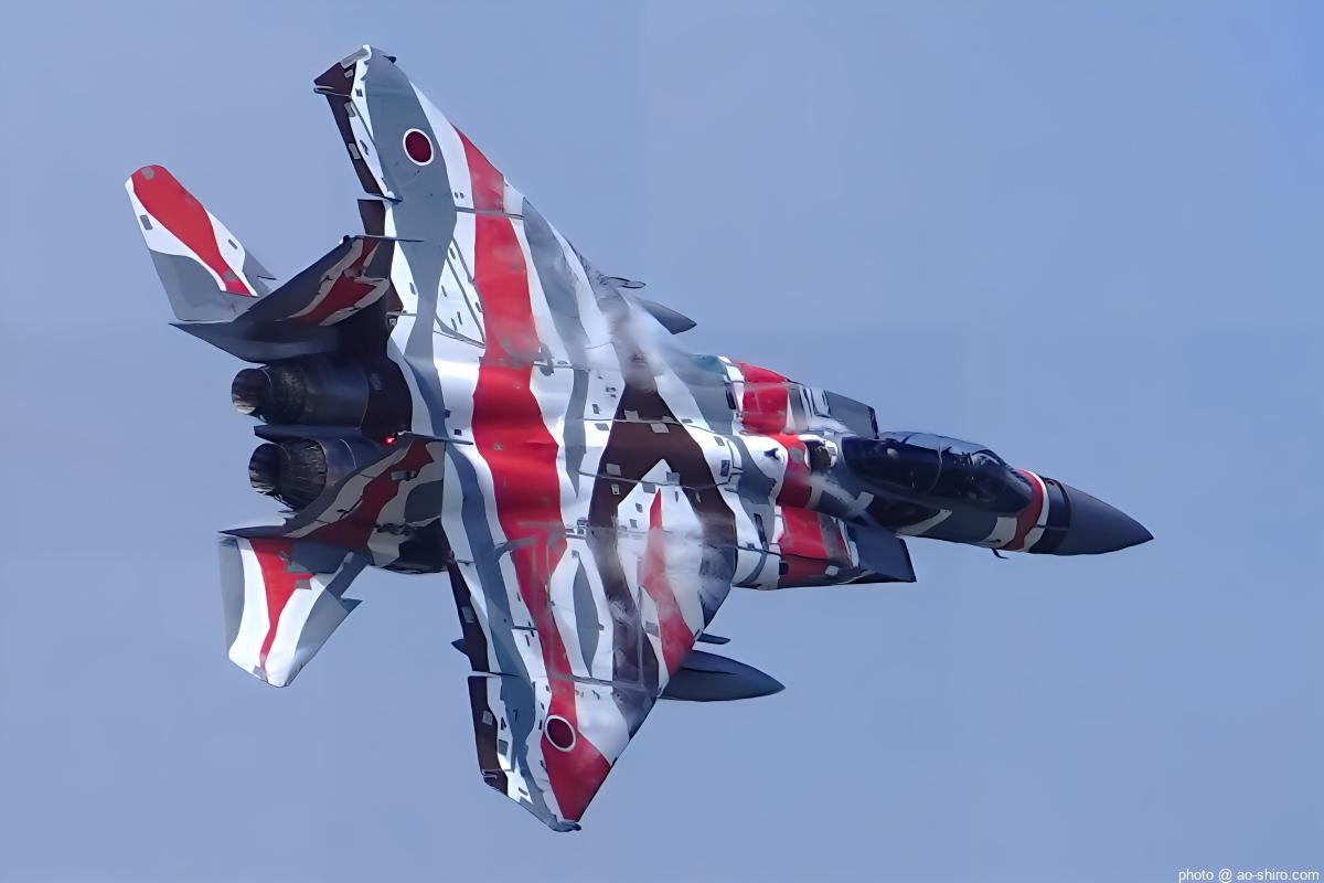 一番のお目当てであるアグレッサー(侵略者)部隊こと飛行教導群のF-15DJ戦闘機のダイナミックな機動飛行が行われ、夢中でシャッターを切った。