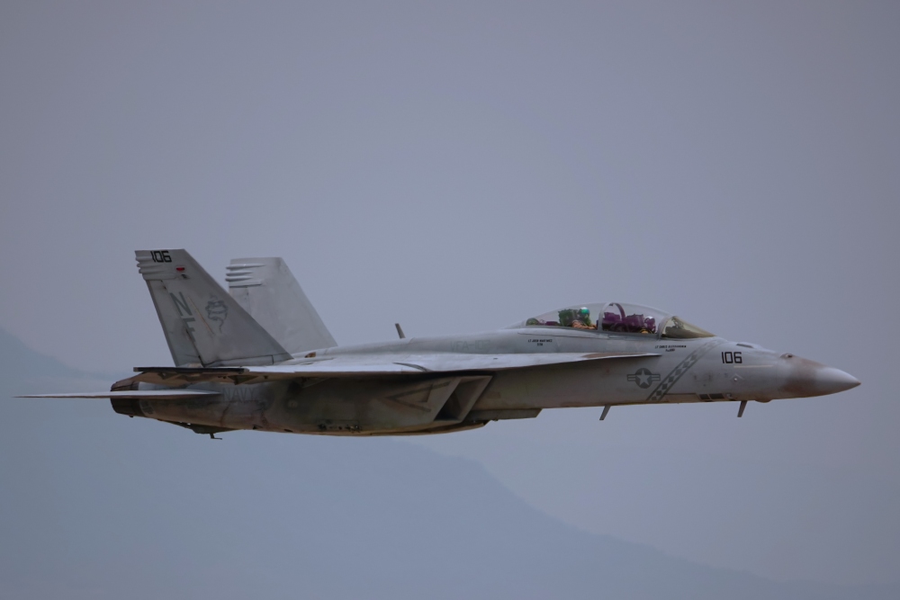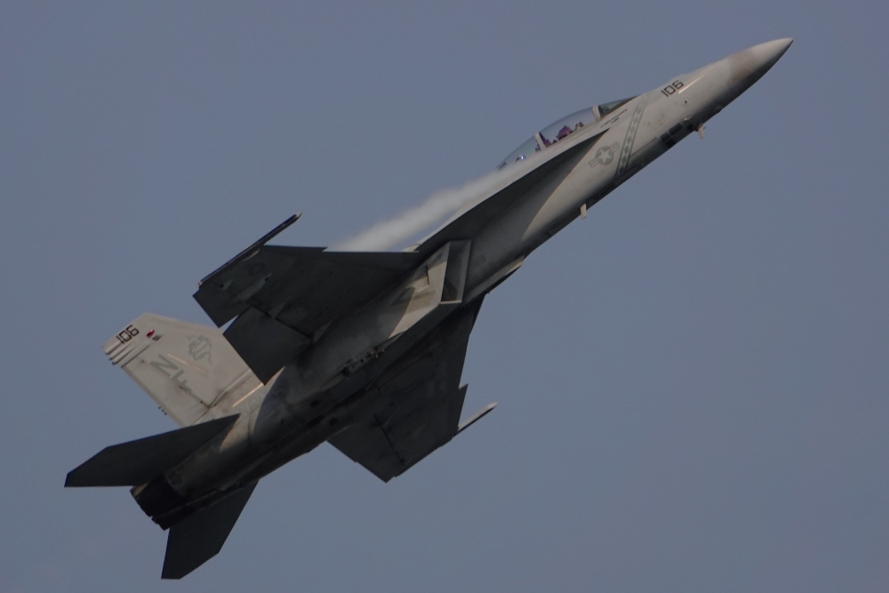 私がFDに行きだした2015年以降、毎年F/A-18戦闘攻撃機の飛行展示を見る/撮ることができたが、前年まではF/A-18C・D型の通称”レガシーホーネット”だった。ところが、2019年のFDでは「トップガン マーヴェリック」の主役(私にとっての主役はトムさんではなくF/A18)である、F/A-18F型の”スーパーホーネット”の飛行展示が行われた。その他、F-35B戦闘機、F-16戦闘機、MV-22輸送機などの米軍機や航空自衛隊機、海上自衛隊機などが披露された。なお、以下の写真・記事の順番は、当日のプログラムの順番に沿ったものではなく、また、お見せできるような写真が撮れなかった演目はカットしていることをご承知いただきたい。