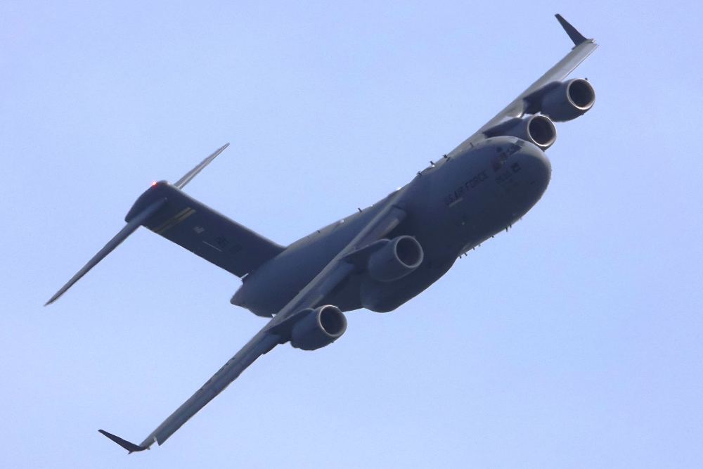 まずは、恒例のパラシュート降下と各種輸送機による飛行展示の写真。なお、私は今回のFDで初めてC-17輸送機”グローブマスターⅢ”を見た/撮ったのだが、この1ヵ月後の伊丹空港でG-20大阪サミットの関係でやってきたC-17輸送機に再会することなった。