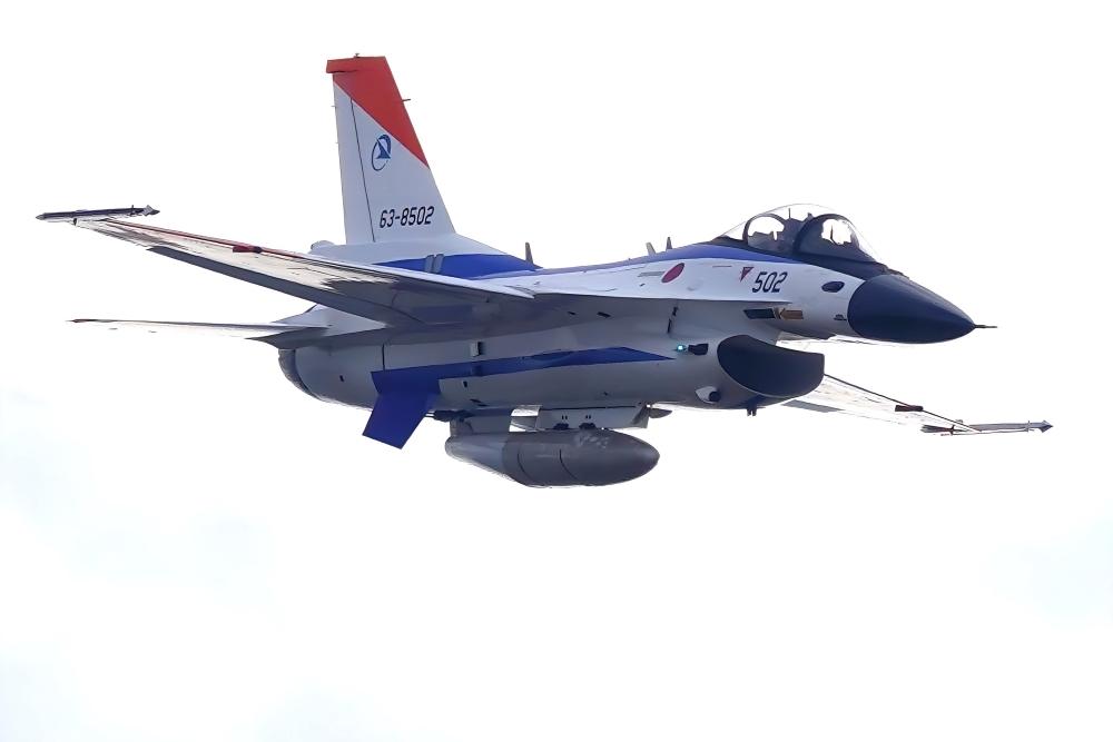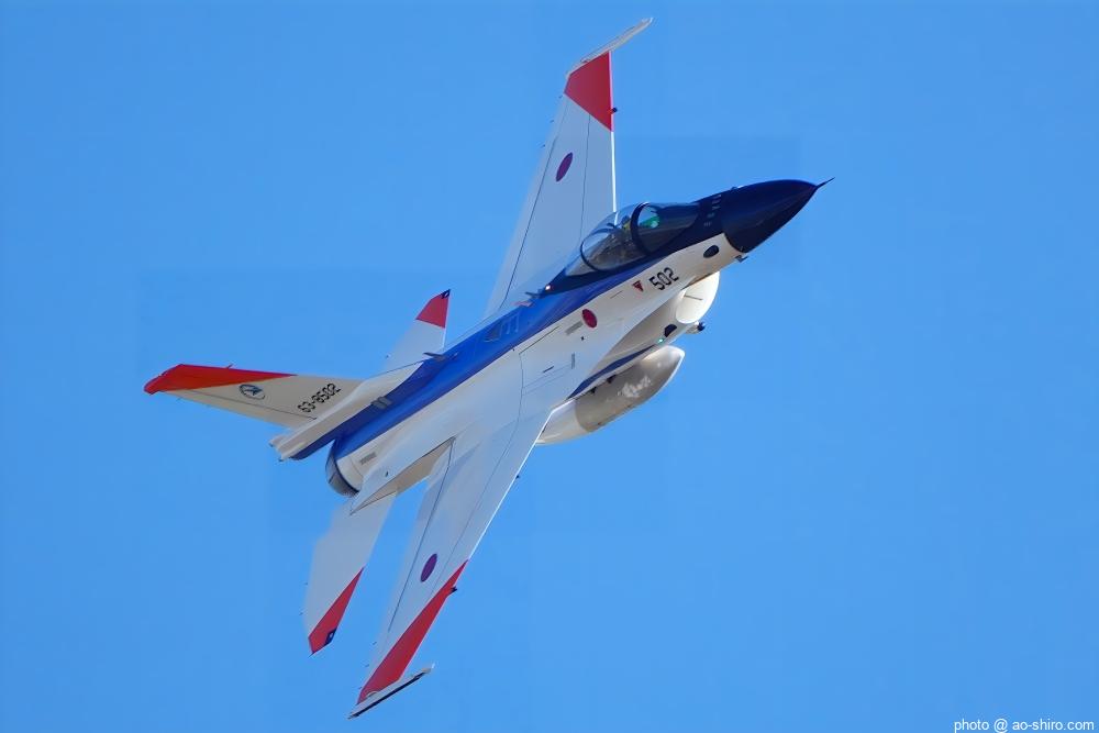 地元機のT-4中等練習機、T-400基本操縦練習機、U-125A救難捜索機、UH-60J救難ヘリコプターの展示飛行もあったが、私のお目当ては岐阜基地所属のF-15J戦闘機とF-2A支援戦闘機の機動飛行。特にF-2A支援戦闘機は、私が最も好きなテスターカラーで彩られた502号機で嬉しかった。