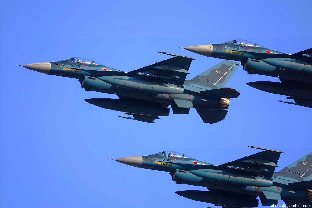 前日は雨が降っていたが、当日は晴れ。逆光が基本ではあったが、地元機のT-7初等練習機の他、外来機のC-2輸送機、F-15J戦闘機、F-2A支援戦闘機などの写真が撮れた。