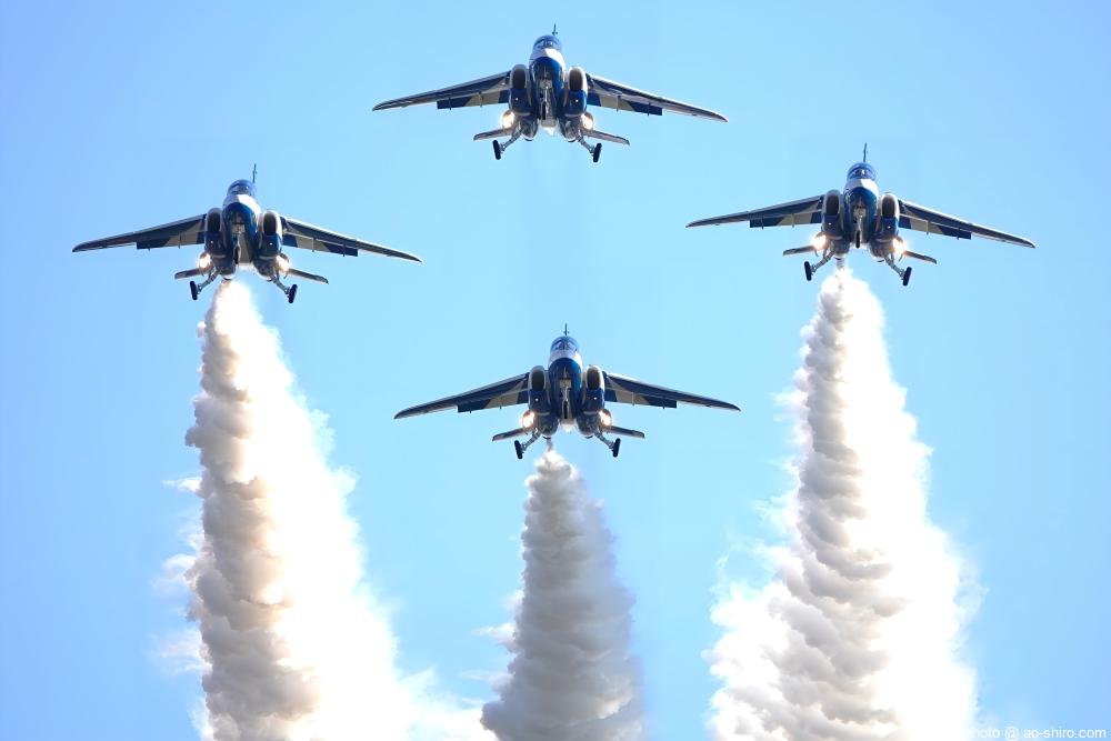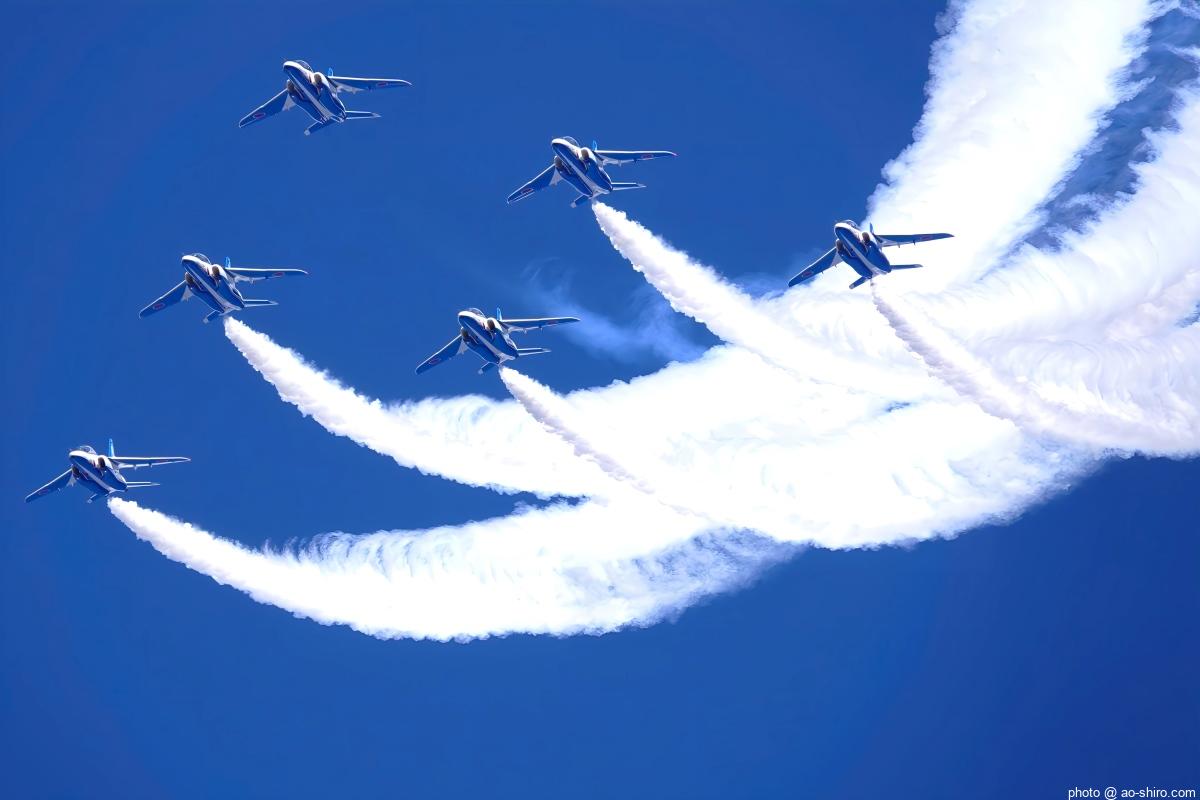 “トリ” はブルーインパルス。晴天に恵まれブルーインパルスの白いスモークが青空に映えた。