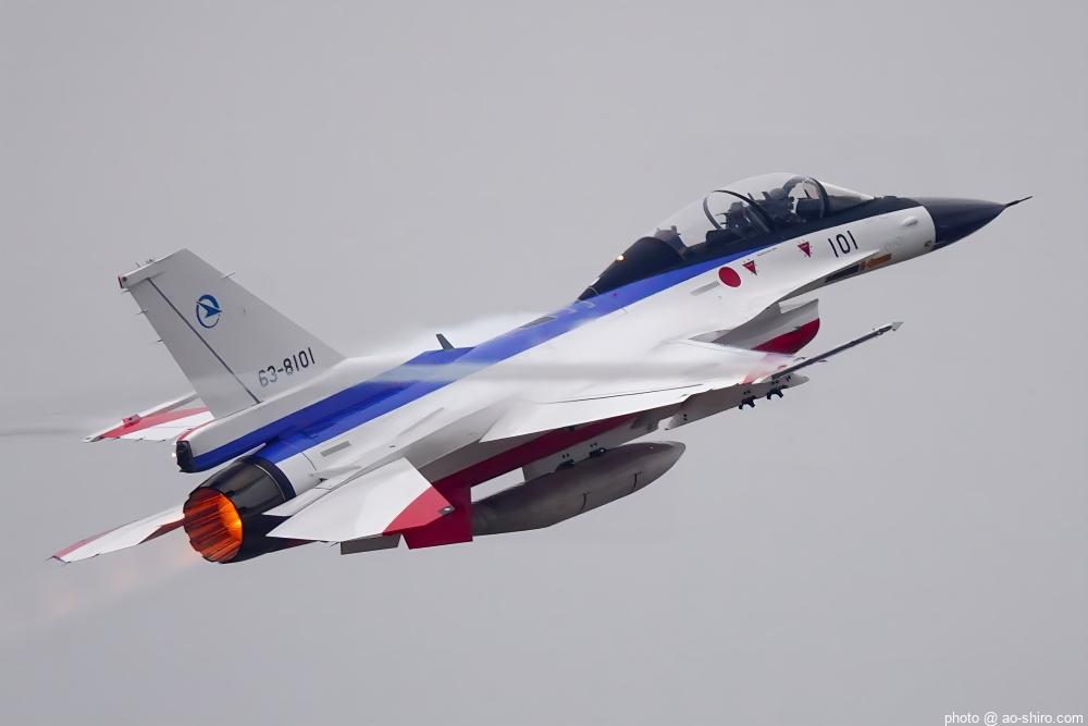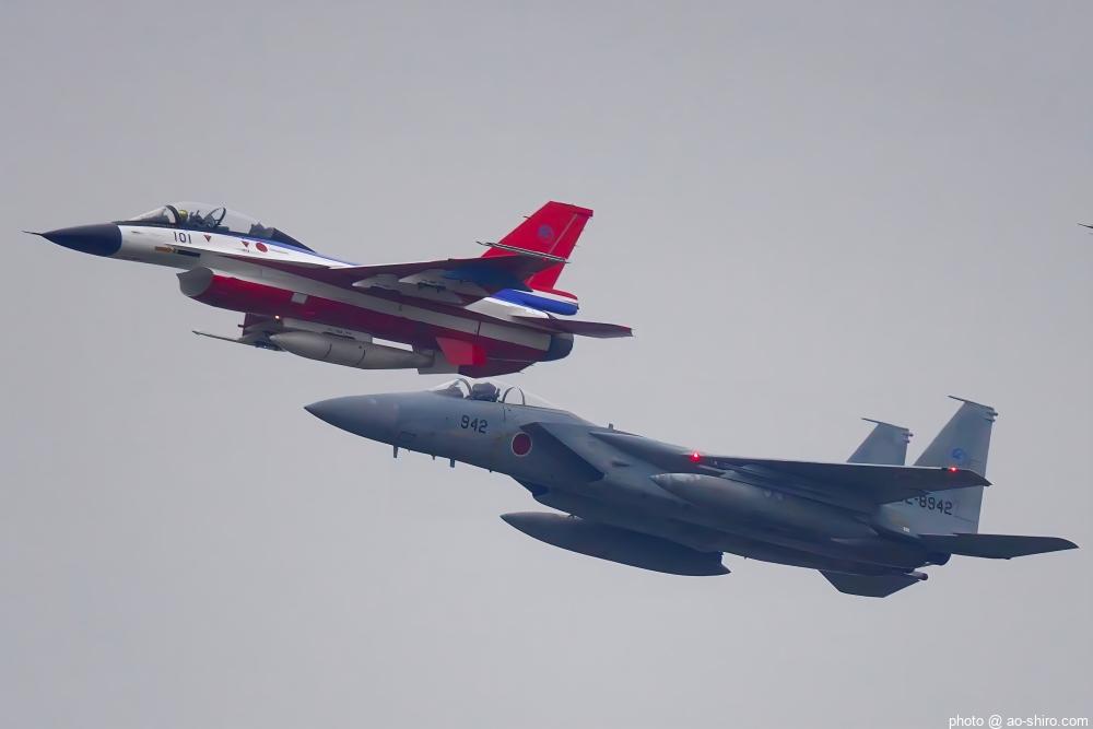 前日は雨が降っていたが、当日は晴れ。逆光が基本ではあったが、地元機のT-7初等練習機の他、外来機のC-2輸送機、F-15J戦闘機、F-2A支援戦闘機などの写真が撮れた。