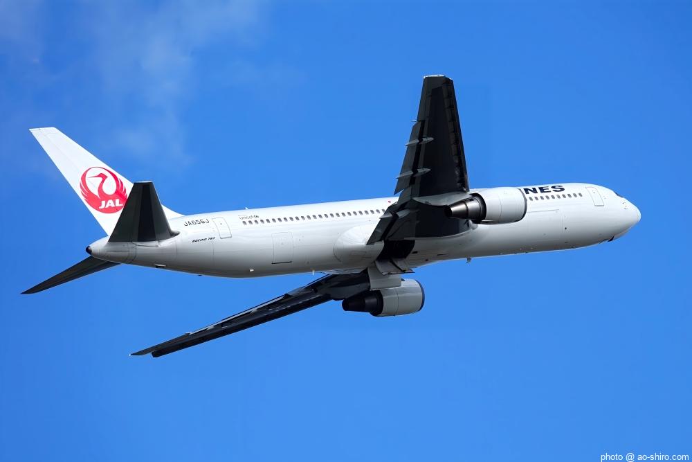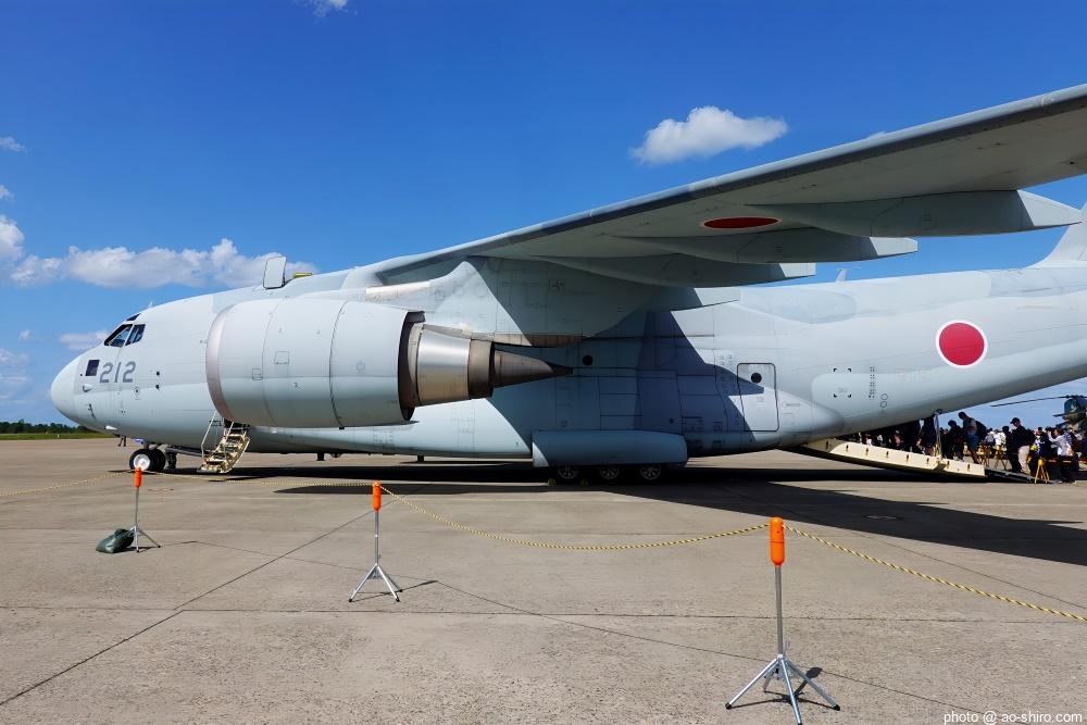 小松基地の滑走路は小松空港と共有しているので、ときおり、民間機の離発着があった。着陸機は地上展示機が邪魔で撮れなかったが、離陸機はタイミングが合えば撮った。離陸するのを待ちかまえて撮るようなことをしなかったので、すべて斜め後ろからの写真になった。
