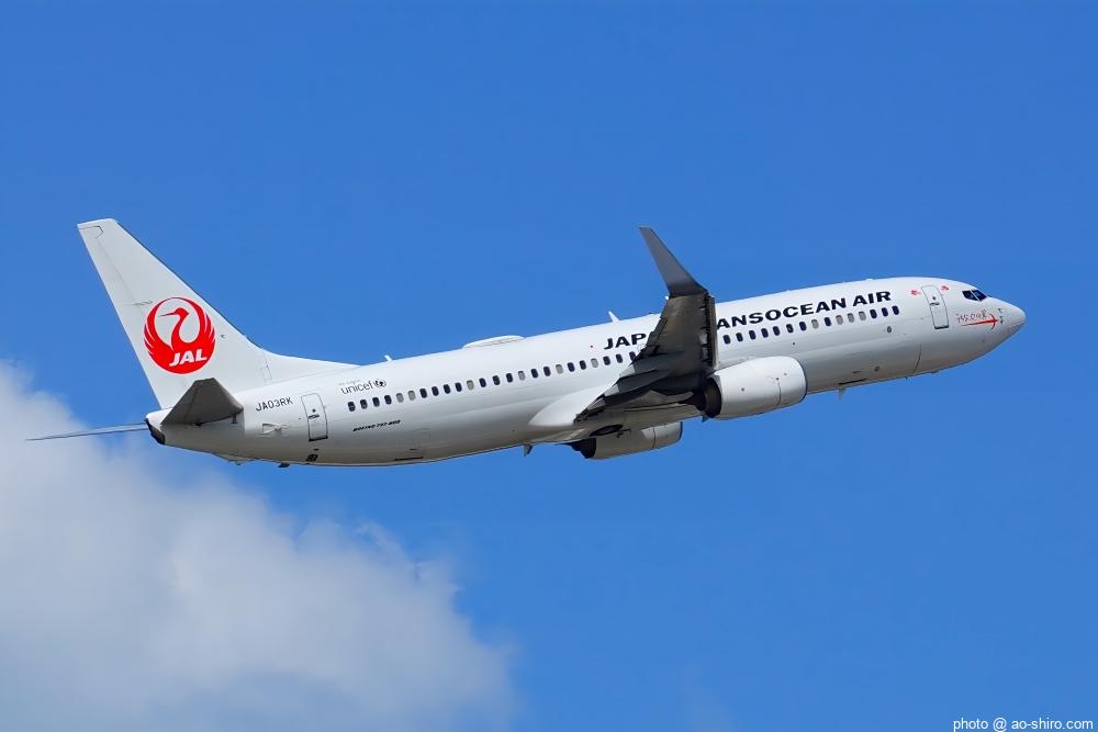 小松基地の滑走路は小松空港と共有しているので、ときおり、民間機の離発着があった。着陸機は地上展示機が邪魔で撮れなかったが、離陸機はタイミングが合えば撮った。離陸するのを待ちかまえて撮るようなことをしなかったので、すべて斜め後ろからの写真になった。