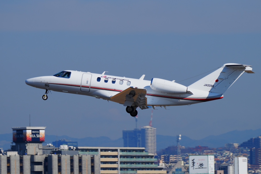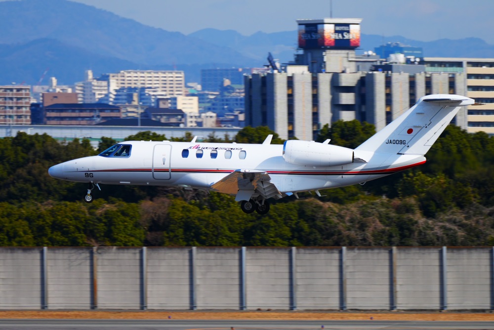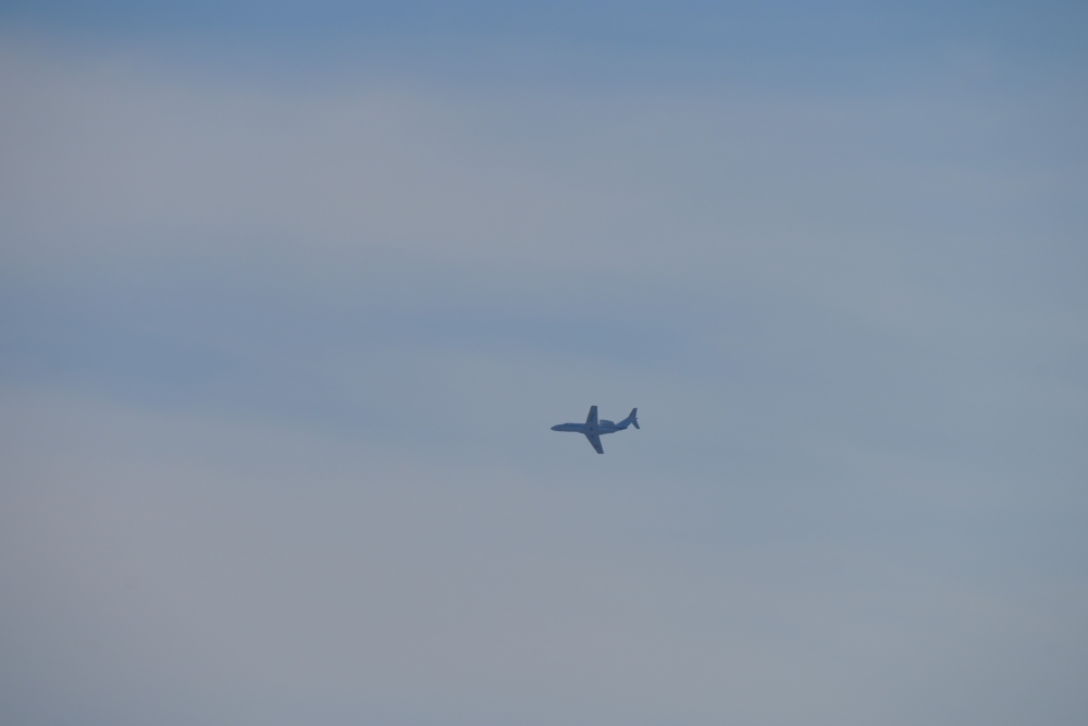 この機の所属や名称を知ったのは、帰宅後にネット検索をしたからで、撮影当時は「訳のわからん小型機」がやってきたくらいの認識だった。それでも、「目の前に撮れる飛行機があれば、とりあえず撮る」精神?を発揮して撮ってみたら、どうやら ” フツー ” の民間機ではないことに気づいた。