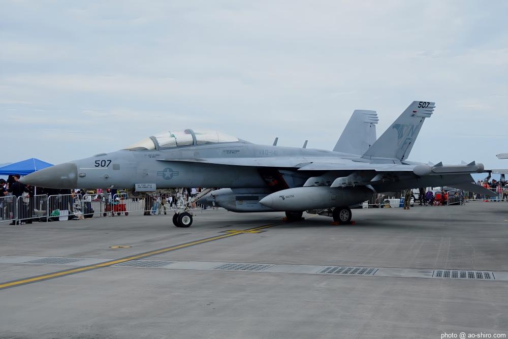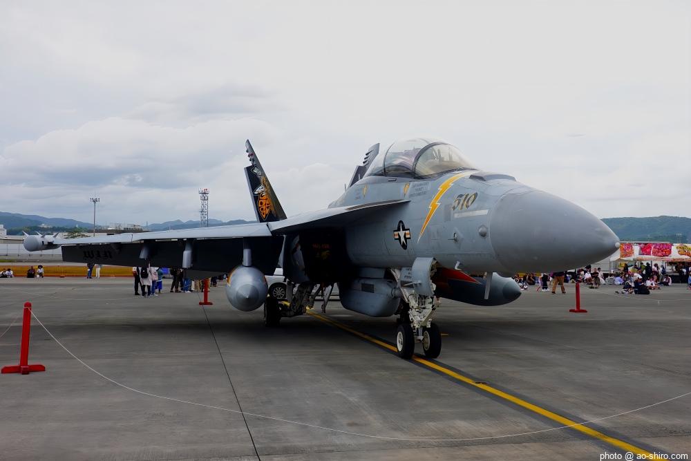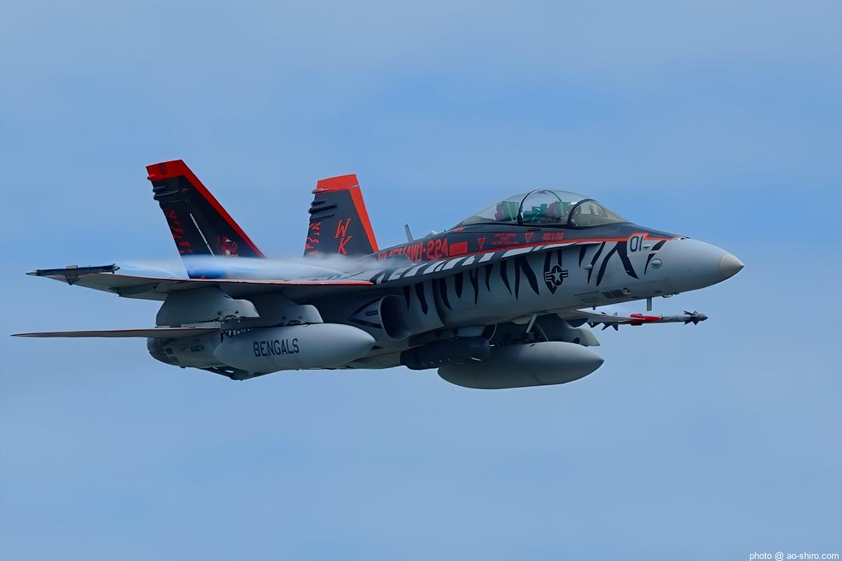 なお、あとで調べて知ったのだが、” ファイティング・ベンガルズ ” は、今年の 3月から半年間、期間限定で岩国に派遣されているとのこと。そのタイミングでFD24が開催され、この独特のカラーリングのF/A-18Dを見る/撮ることができて本当によかったと思う。