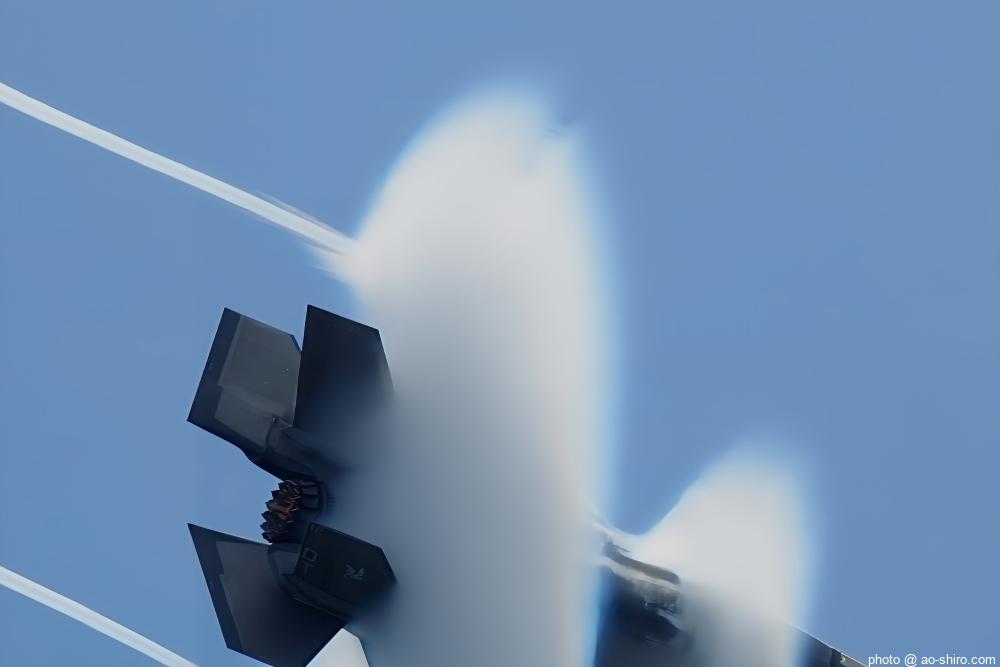 ヴェイパーやヴェイパーコーンを発生させながら激しい機動飛行を展開したかとおもえば、驚くほど超低速での飛行やホバリングを披露した。