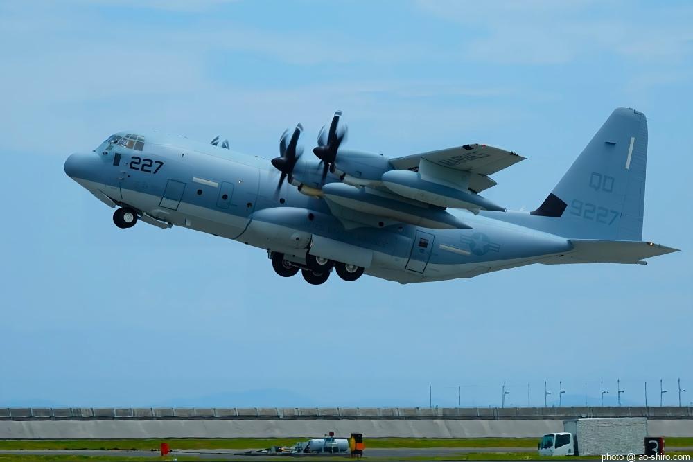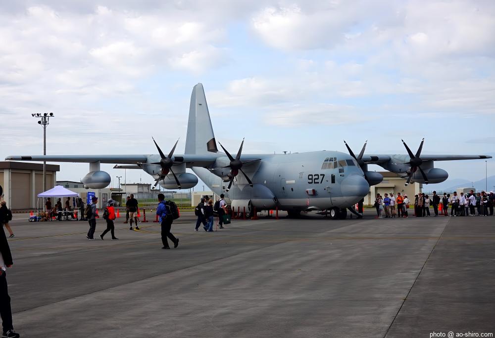 “普通の” 航空祭であれば、午前と午後の飛行展示の間には1時間~1時間半くらいの休憩(何も飛ばない時間帯)が入るのだが、今回のFD24は休みなし。ブルーインパルスのプログラム終了後、すぐにMAGTFの飛行展示が始まった。
