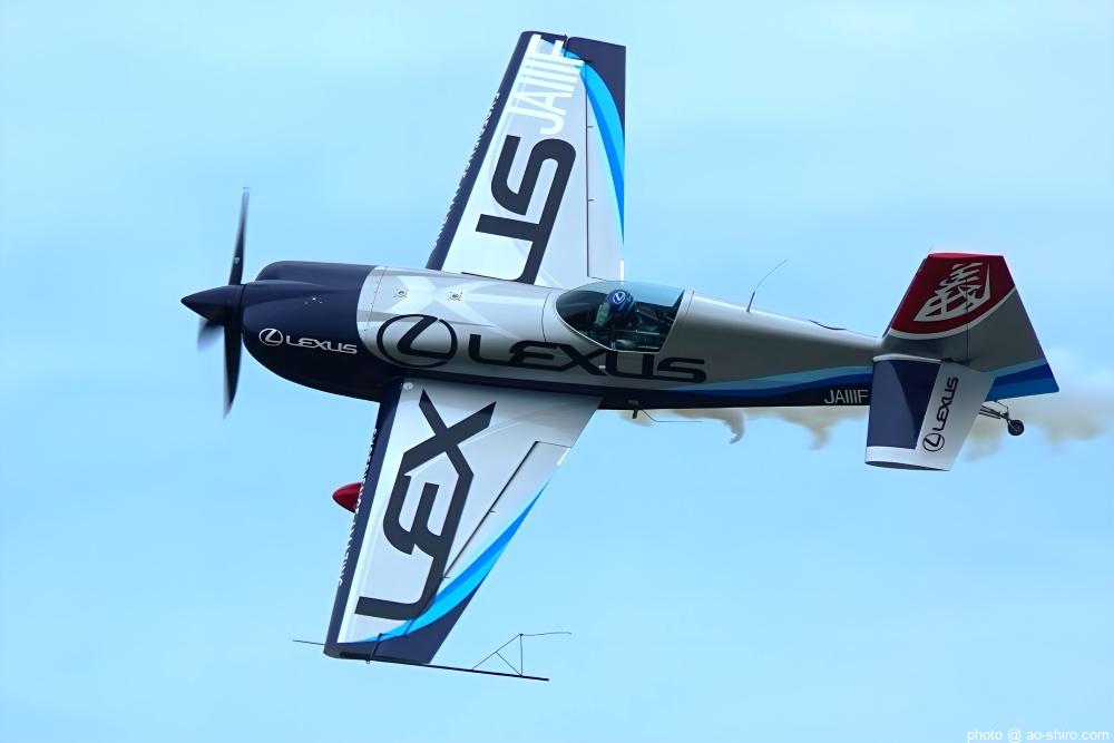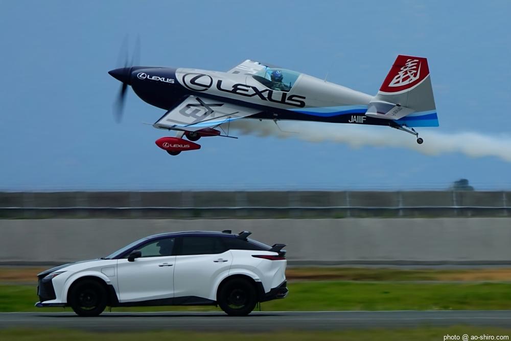 室屋選手は、いつもながらのダイナミックな曲技飛行を披露してくれた他、自動車(レクサス車)との競争シーンも見せてくれた。
