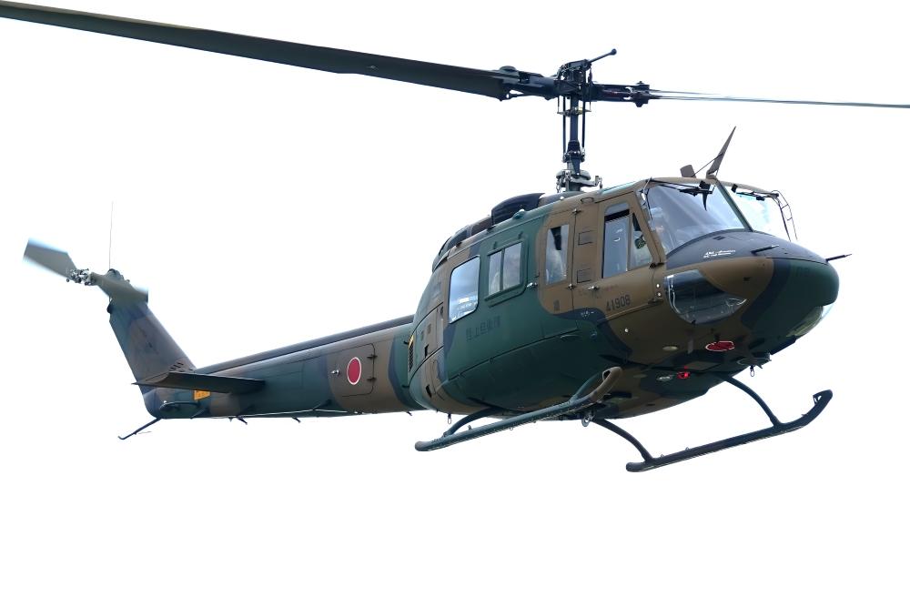 陸上自衛隊のこのプログラムは定番中の定番。UH-1多用途ヘリコプターから4名の陸自隊員がロープを使って地上まで降下した。なお、シャッタースピードは最初から1/1,000秒に設定して撮った。