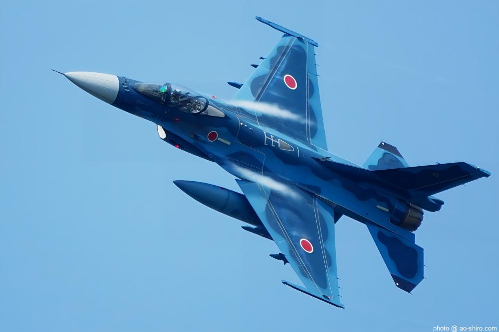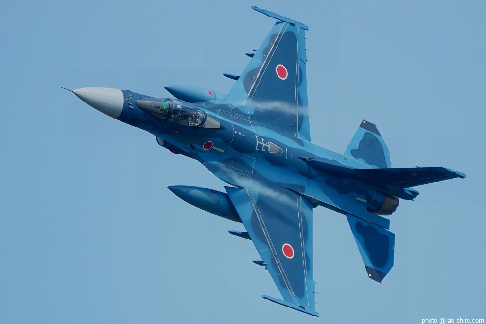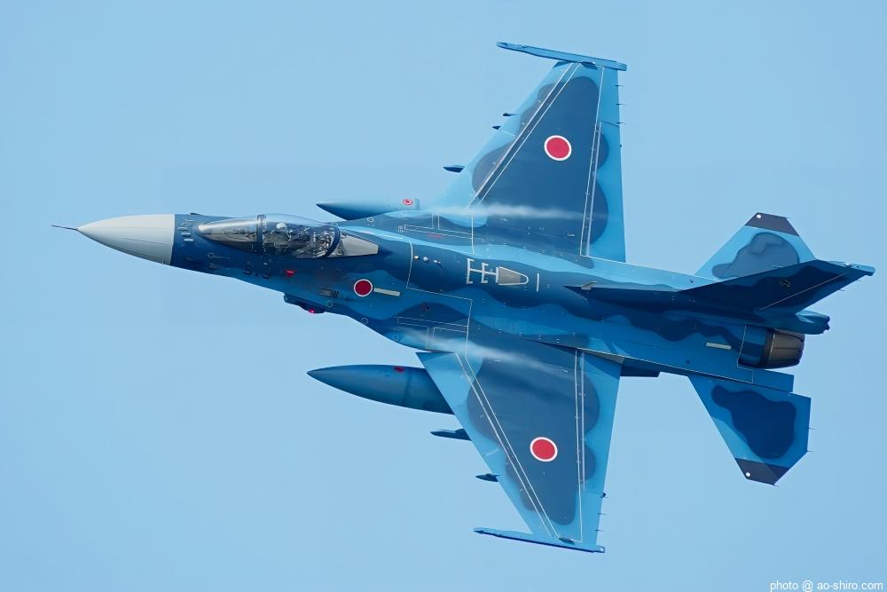 今回の戦闘機の飛行展示は、築城基地 第8飛行隊(ハチスコ)所属のF-2A支援戦闘機のみ。F-2といえば、小牧(3/3)ではロクな写真が撮れずあえなく「敗退」。岩国(5/5)では「集合時間に遅れるかも」を言い訳にして撮らずに会場を離れたので「不戦敗」。なので、「今度こそは良い写真を撮りたい」との意気込みで挑んだ。