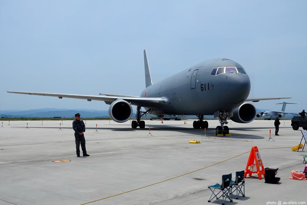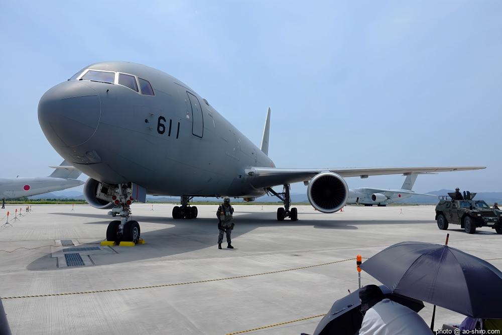 いつも、撮影場所は「滑走路と基地建屋・施設との中間地点」にしてしているが、今回は、滑走路前の地上展示機が大型機揃い(KC-46A、C-130H、C-1、C-2など)なので、中間地点よりも基地建屋・施設に近い場所を選んだ。なお、今回は滑走路前の場所が空いていたので一番前で撮ることもできたが、迷わず ” パス ” した。