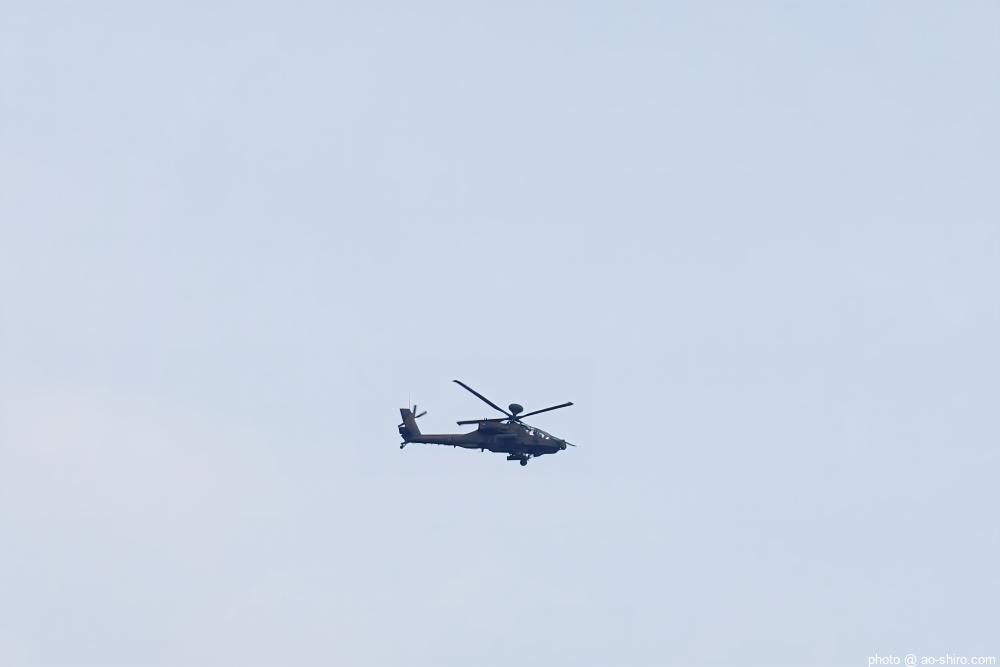 また、ヘリコプターの爆音が聞こえてきたので空を見上げたらAH-64D攻撃ヘリコプターが飛んでいたので、これも撮った。