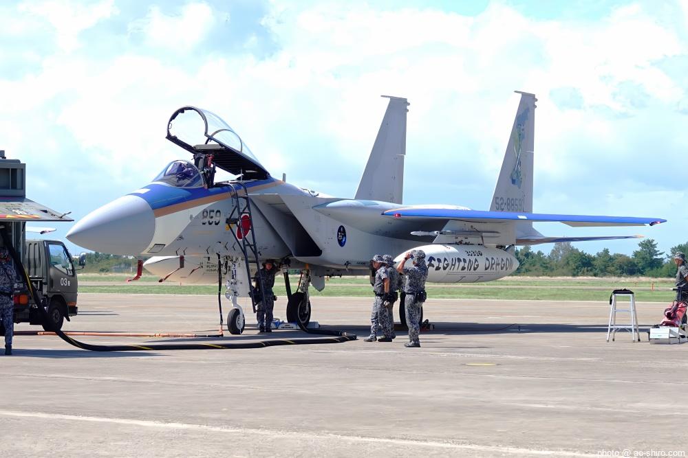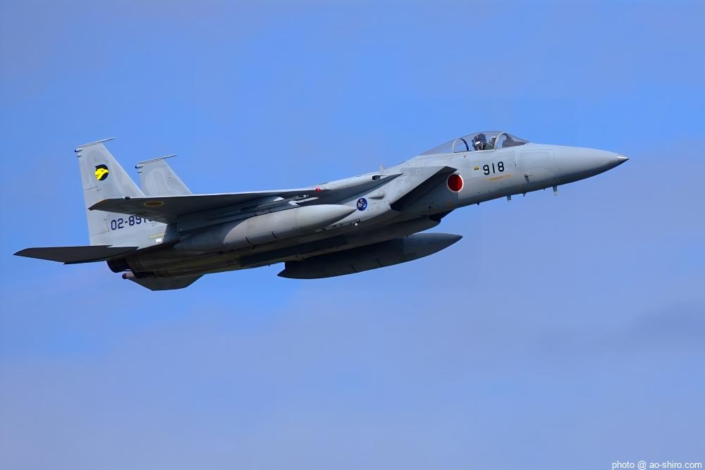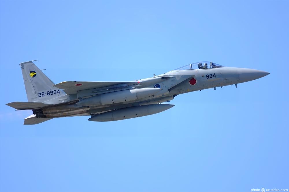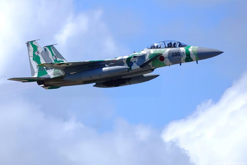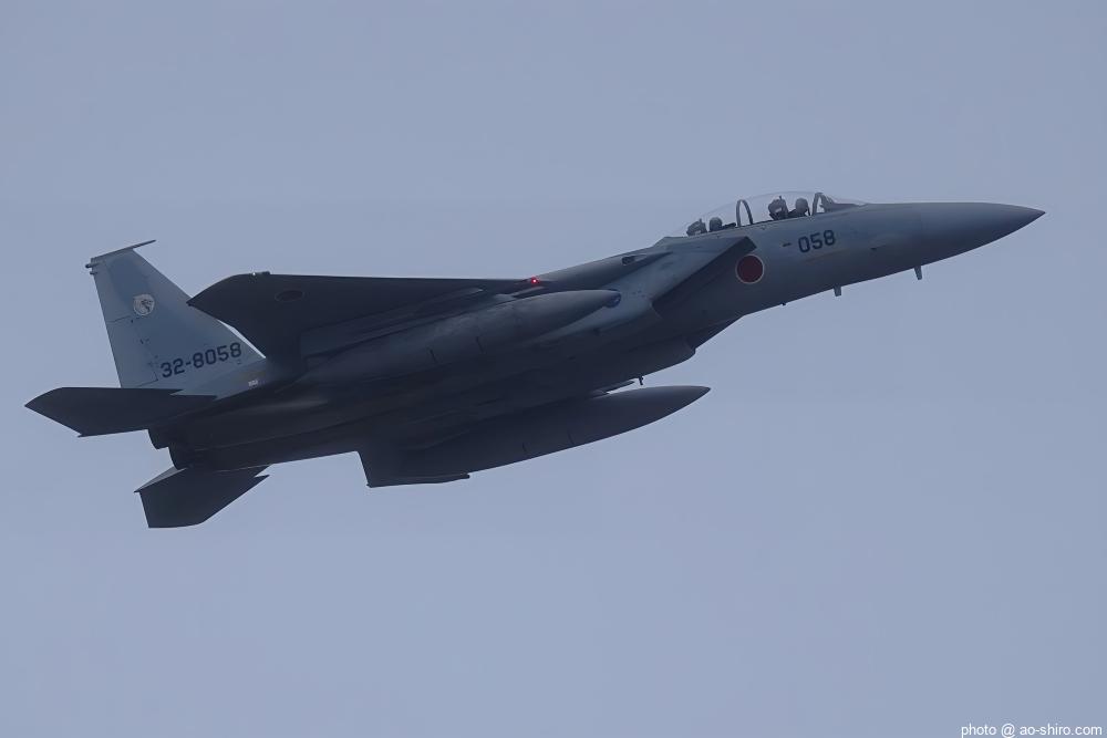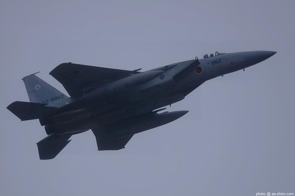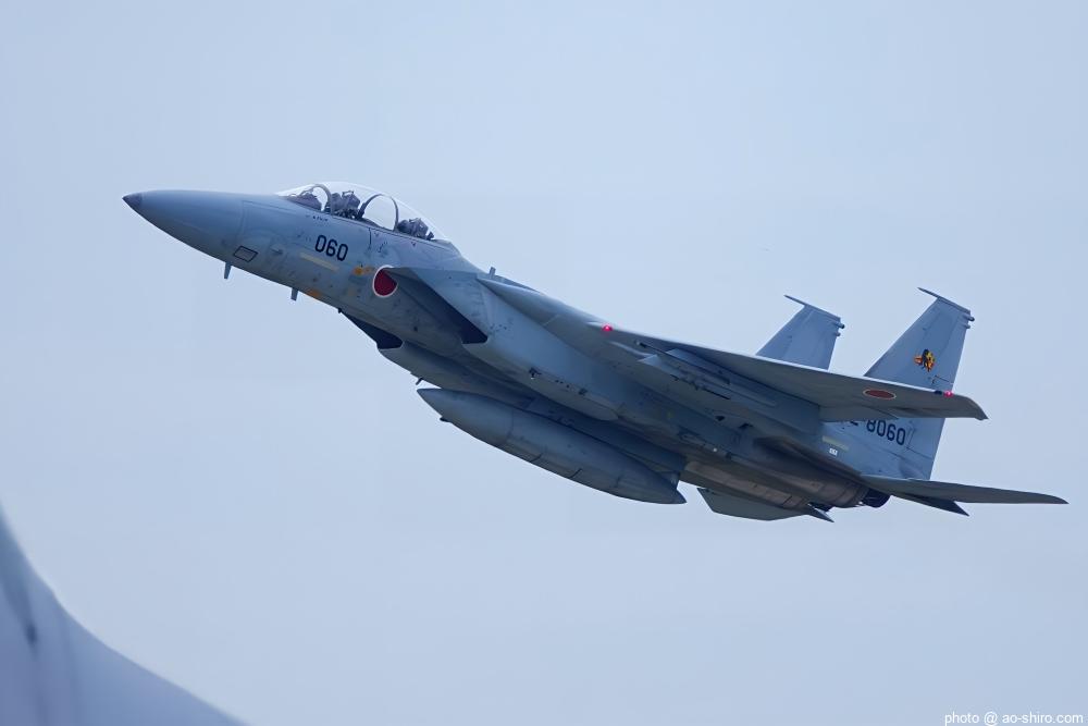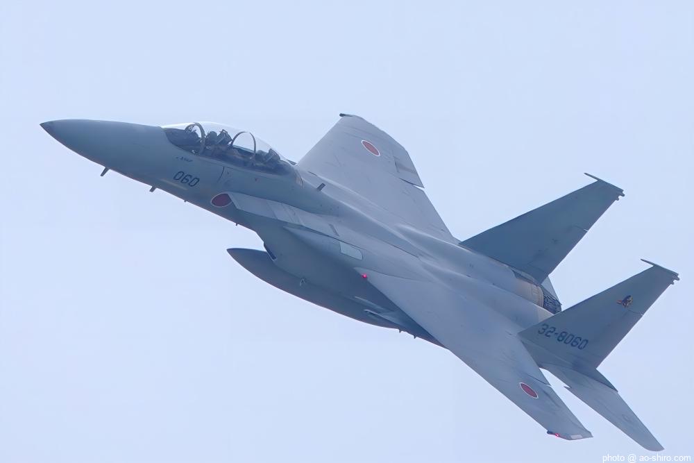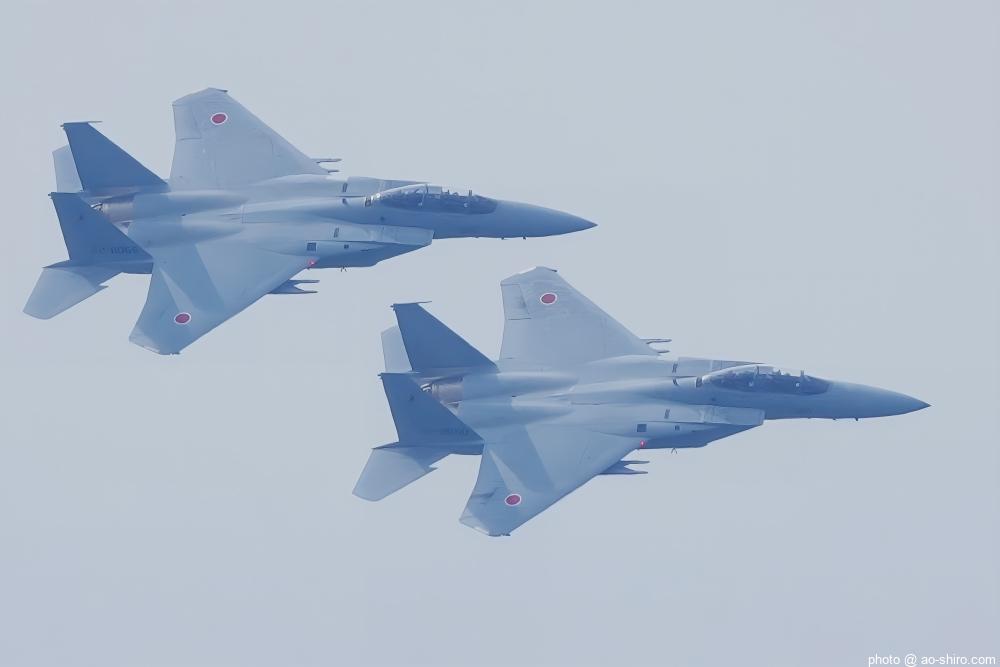 新田原基地 第23飛行隊所属のF-15DJ戦闘機 2機が力強い機動飛行を披露してくれた。