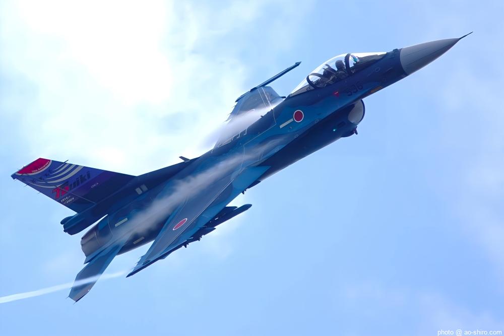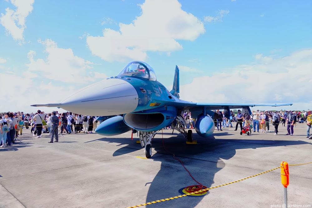 築城基地からやってきたF-2A支援戦闘機は、「航空自衛隊70周年記念塗装機」だった。尾翼のみの特別塗装だったが、11月24日の築城基地航空祭に先駆けて記念塗装機を見る/撮ることができてうれしくなった。