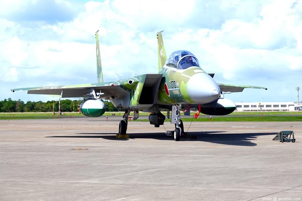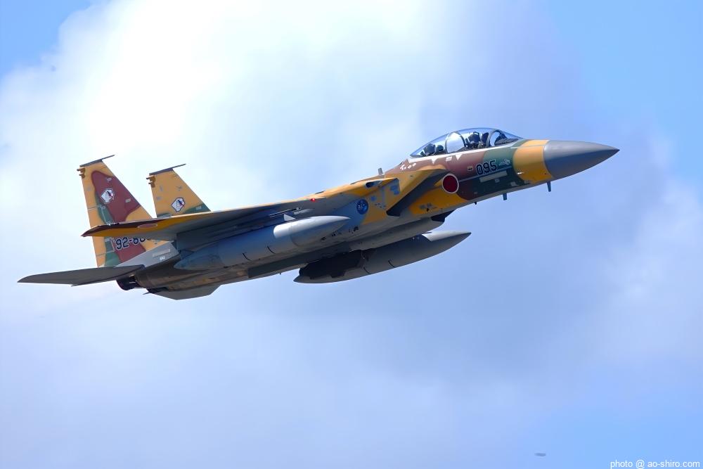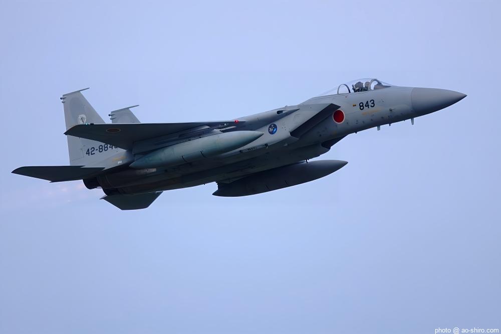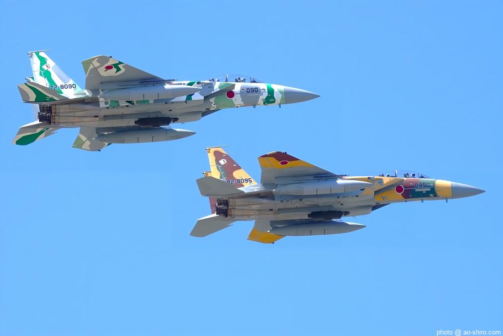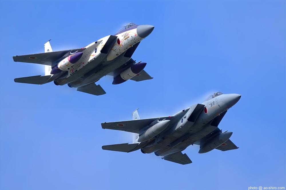 新田原基地 第23飛行隊所属のF-15DJ戦闘機 2機が力強い機動飛行を披露してくれた。