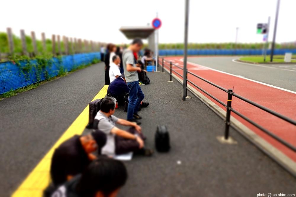 遠賀川駅前のロータリーには、すでにシャトルバスを待つ人の列ができていたので、最後尾に並んだ。