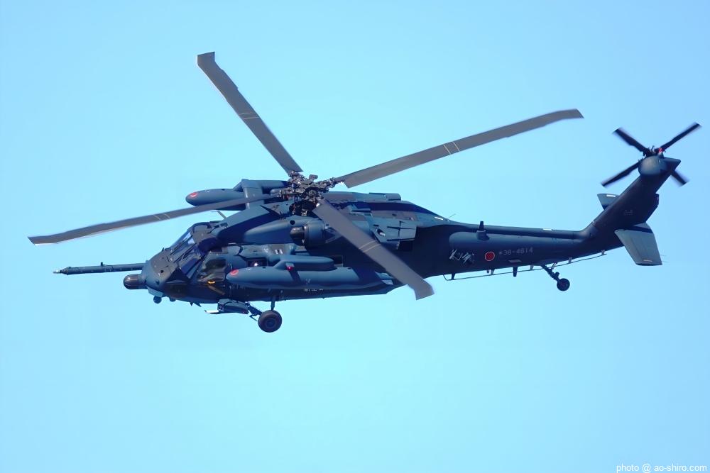また、ヘリコプターの爆音が聞こえてきたので空を見上げたらAH-64D攻撃ヘリコプターが飛んでいたので、これも撮った。