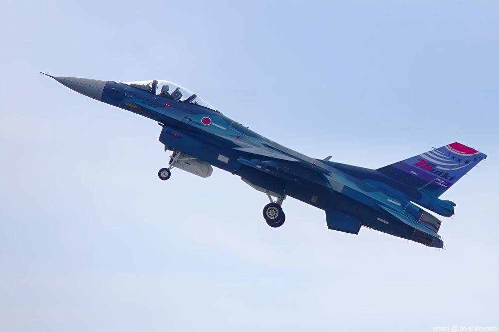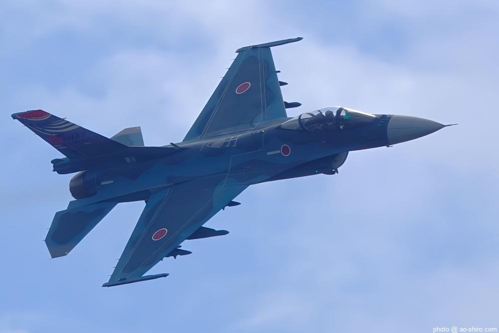 築城基地からやってきたF-2A支援戦闘機は、「航空自衛隊70周年記念塗装機」だった。尾翼のみの特別塗装だったが、11月24日の築城基地航空祭に先駆けて記念塗装機を見る/撮ることができてうれしくなった。