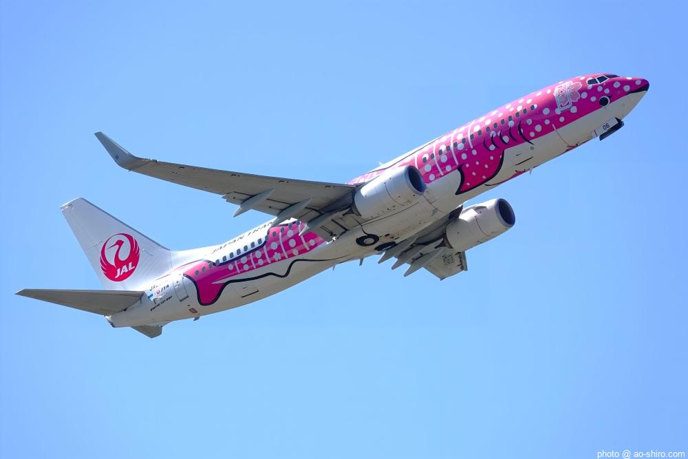 低い高度の離陸で、滑走路エリアの車や施設が邪魔になって機体が見えたり隠れたりするのでカメラに収めるのが難しかった。