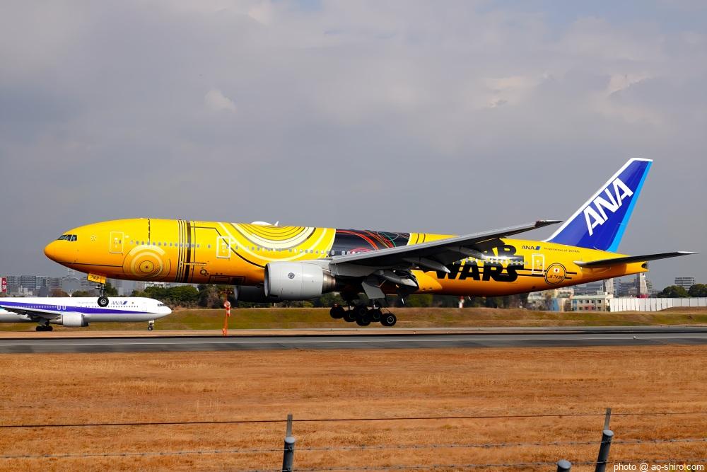 B777の特別塗装機は3機で、ANAの「HELLO 2020 JET」と「C-3PO ANA JET」、JALの「one world 塗装機」