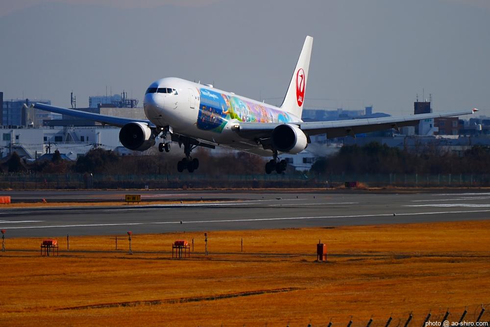 どちらかというと地味な印象のB767(私の個人的見解)だが、ディズニーキャラクターに彩られたこの機は、華やいで見えるのでテンションが上がる。
