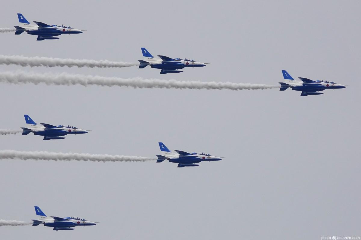 リハーサルでも本番と同様に午前11時40分にKIXを離陸して北上。通天閣、大阪城の上空を経て旧万博会場上空に到達。その後、「ひらかたパーク」上空に回り、12時から新万博会場上空で飛行展示を行うと発表されていたので、午前11時半頃から撮影場所で待機。11時52分頃にBIの6機編隊が姿を現し、約1分ほどで視界から消えて行った。