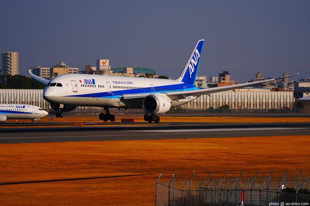 今回撮影のメインは ” 流し撮り ” だったが、大型機をフレーム内に収めるのが難しかった。また、午後、日が陰り始めたころの輝く機体とトーンを落とした背景との対比が面白いと思ったことから、後半は、シャッタースピードを 1/1,000秒以上に設定して ” ビタ止め ” 撮りをした。