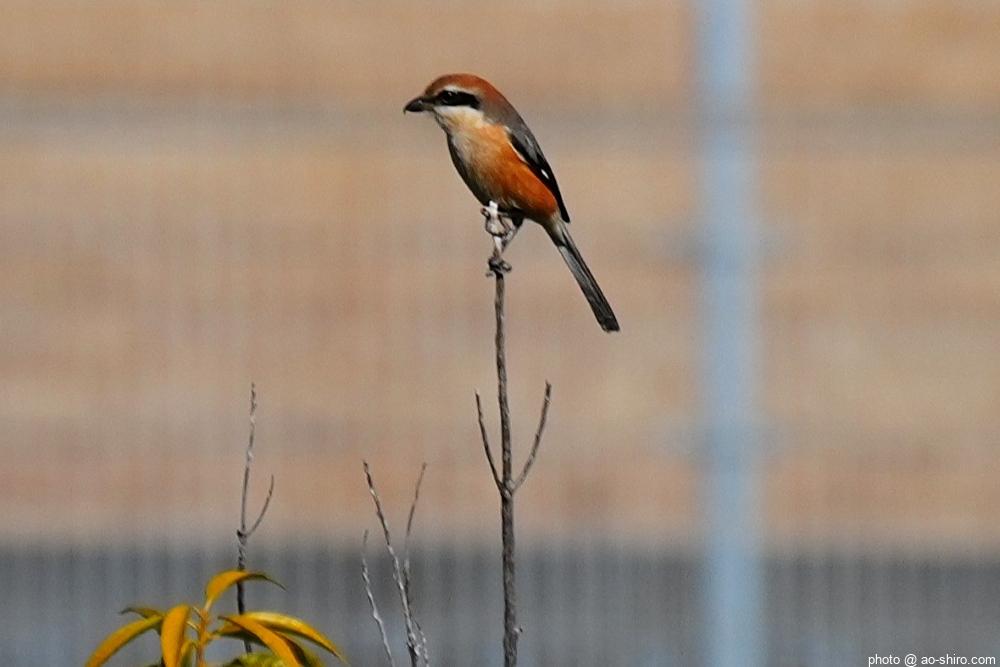 かなり離れた場所だったが、木の枝の上に止まってる鳥に気づいたので、APS-Cクロップと「全画素超解像ズーム」を併用して撮影。拡大してみたらモズだった。