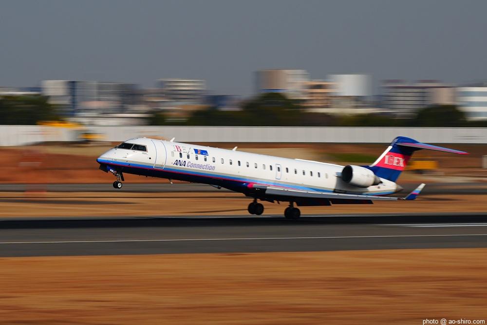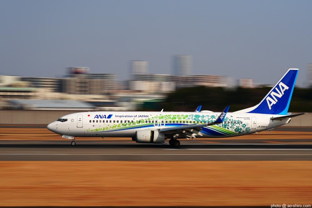 今回撮影のメインは ” 流し撮り ” だったが、大型機をフレーム内に収めるのが難しかった。また、午後、日が陰り始めたころの輝く機体とトーンを落とした背景との対比が面白いと思ったことから、後半は、シャッタースピードを 1/1,000秒以上に設定して ” ビタ止め ” 撮りをした。