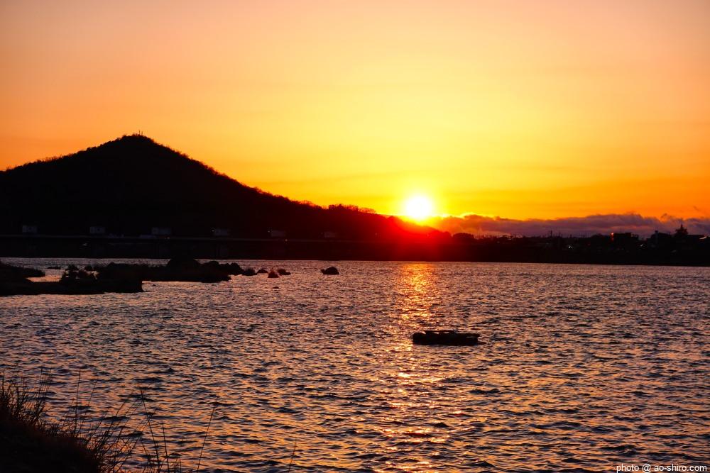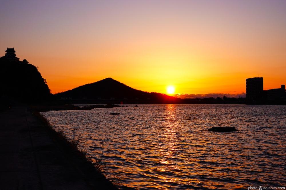 夕食までに時間があったので、チェックイン後、木曽川沿いの遊歩道に降りて夕陽に染まる犬山城やあたりの風景を写真に収めたが、風が強くてとても寒かったので、15分くらいで引き上げた(寒がりなので)。