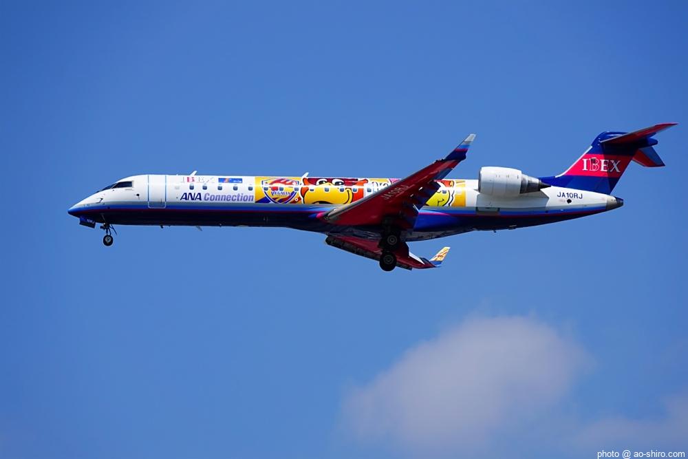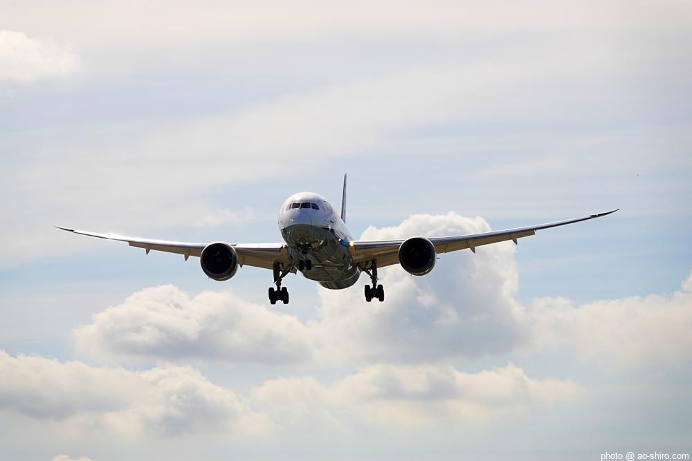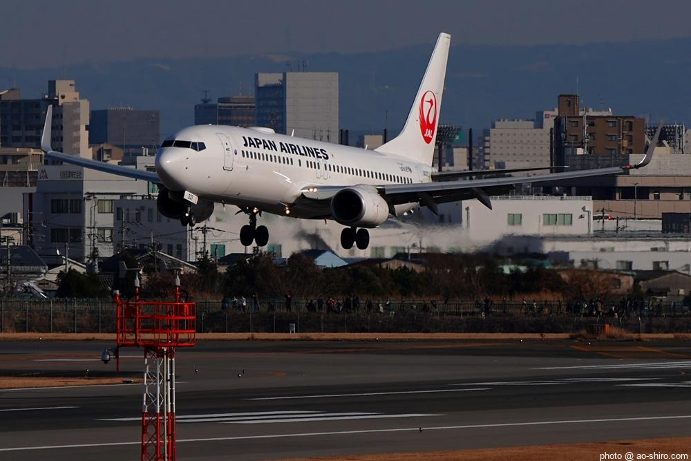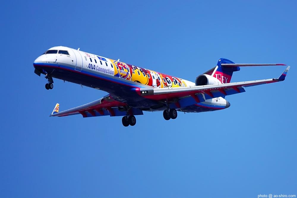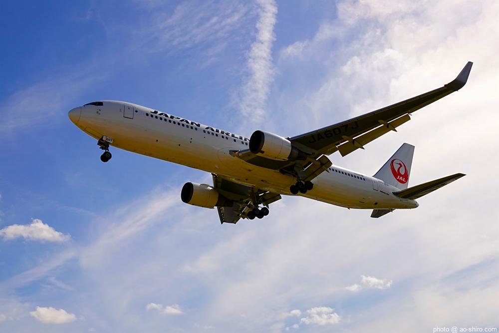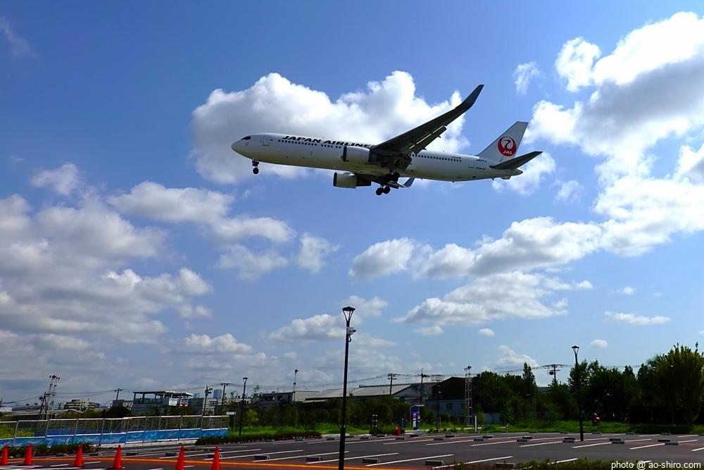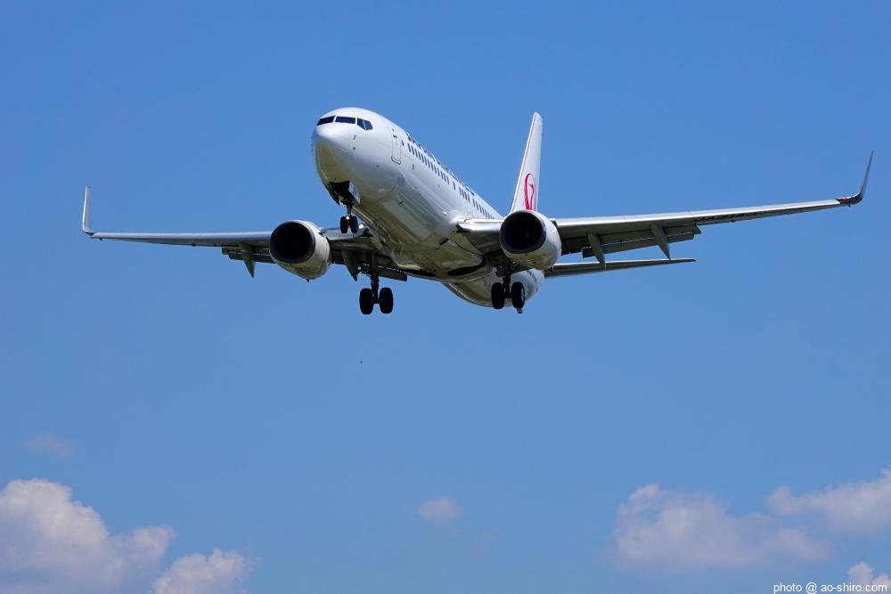 HNDを 9時頃離陸したC-3POJは、10時17分頃に飛来。何度も撮っていた飛行機なので落ち着いて撮れたが、使用レンズの広角側が100mmなので、真横に来た機体の全景を撮ることができなかった。また、逆光気味だったので、ベストショットとは言えない出来だったのが残念。