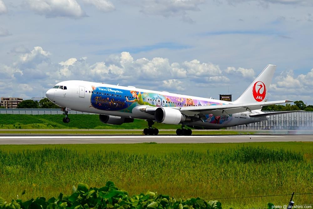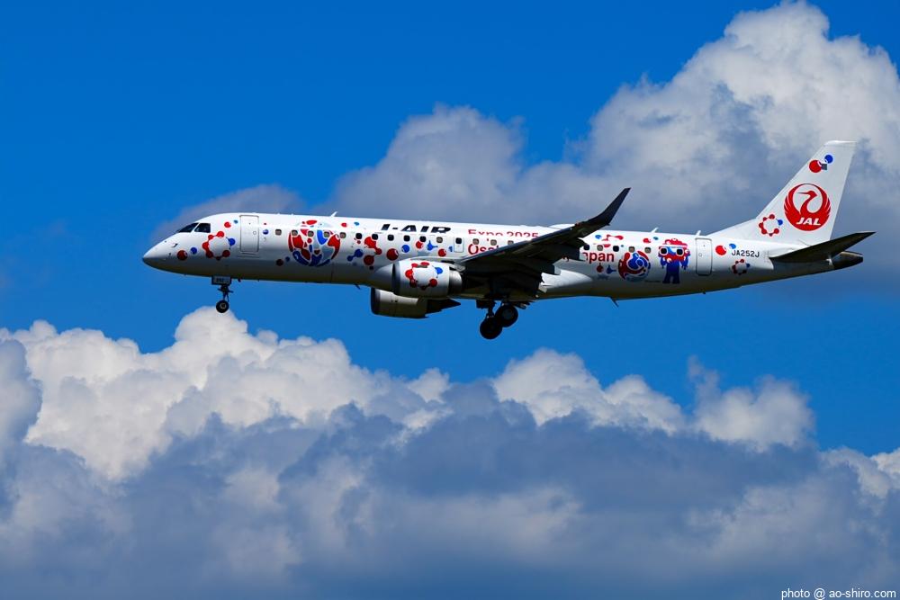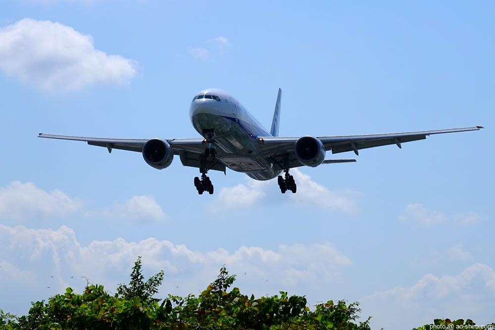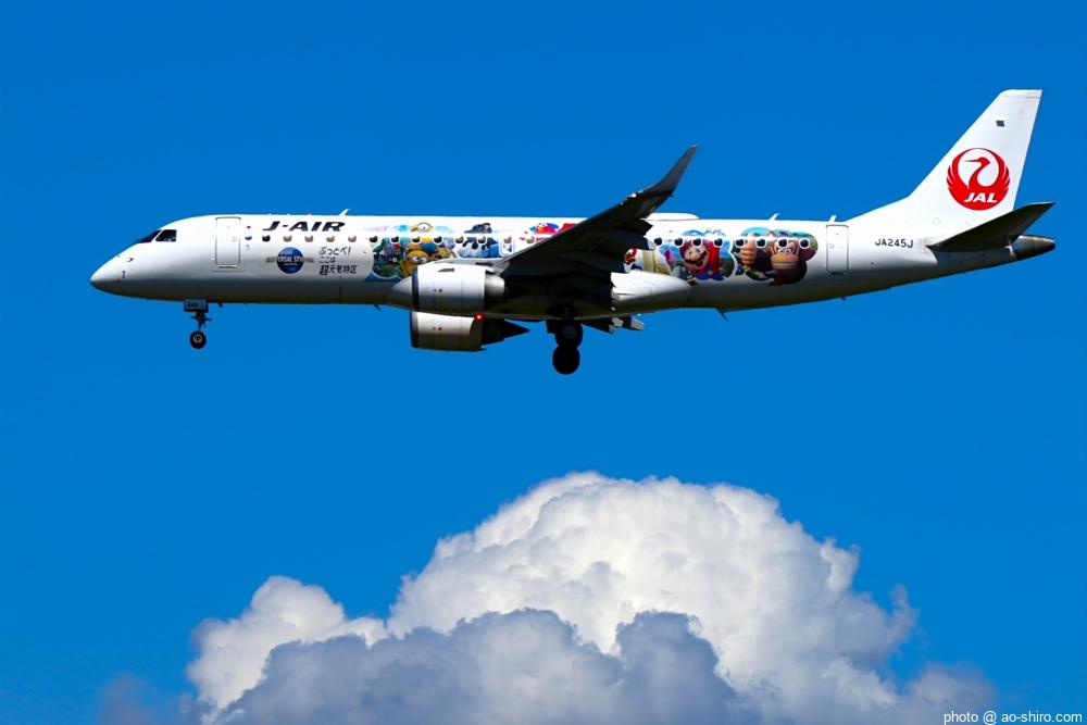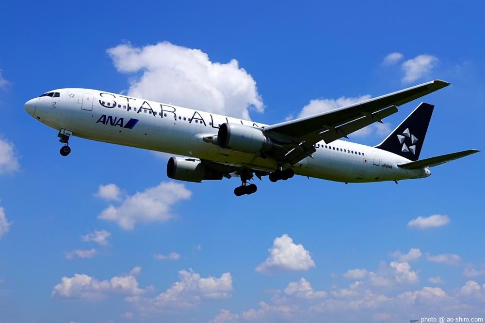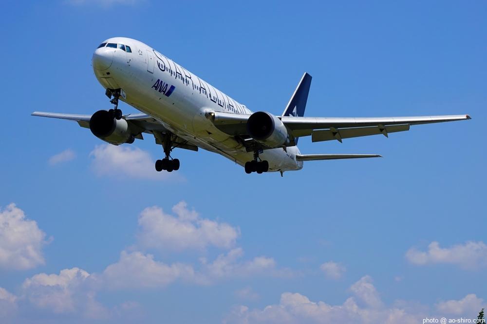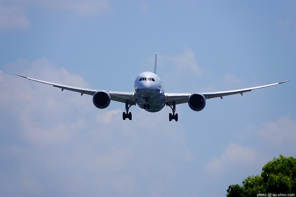 HNDを 9時頃離陸したC-3POJは、10時17分頃に飛来。何度も撮っていた飛行機なので落ち着いて撮れたが、使用レンズの広角側が100mmなので、真横に来た機体の全景を撮ることができなかった。また、逆光気味だったので、ベストショットとは言えない出来だったのが残念。