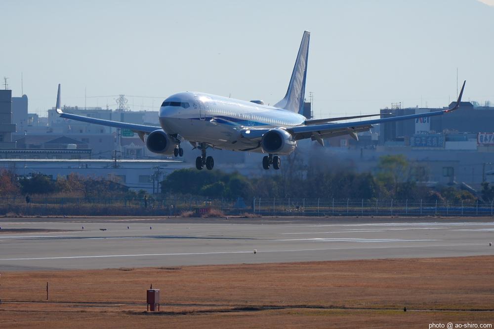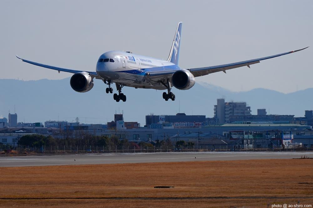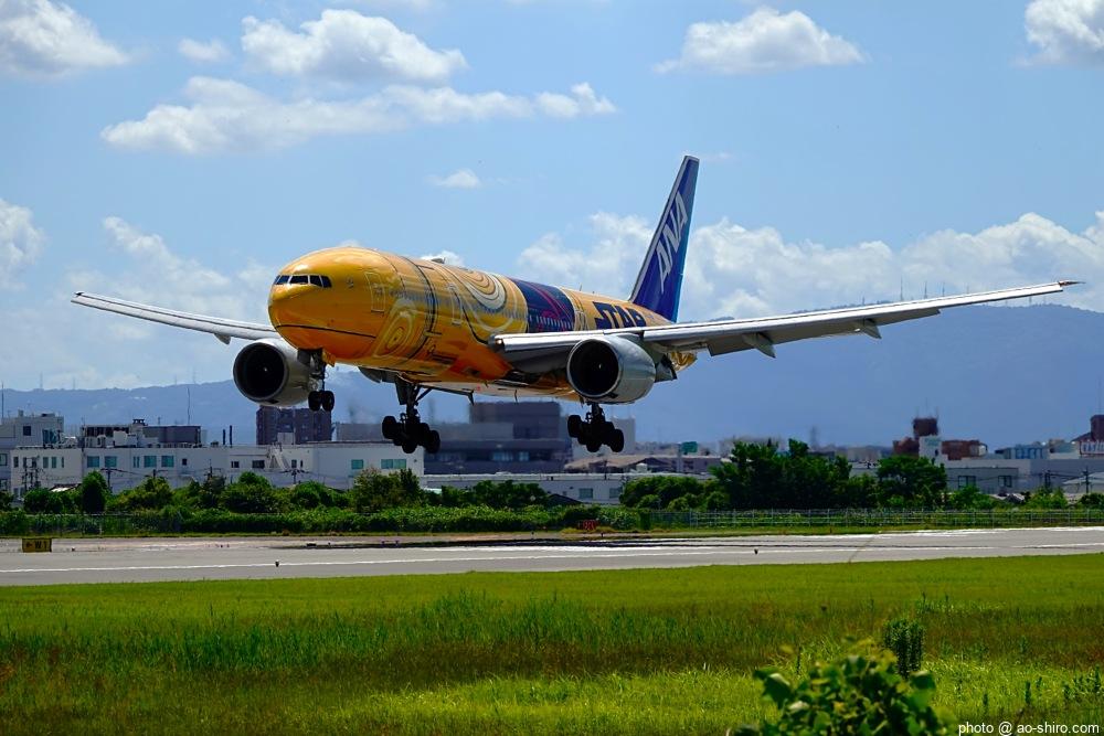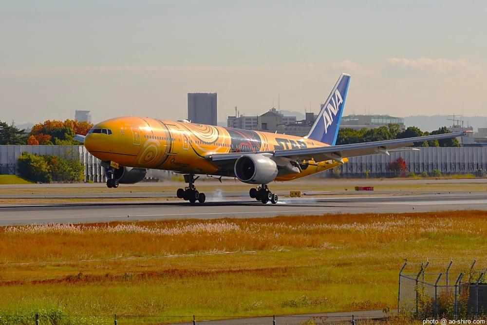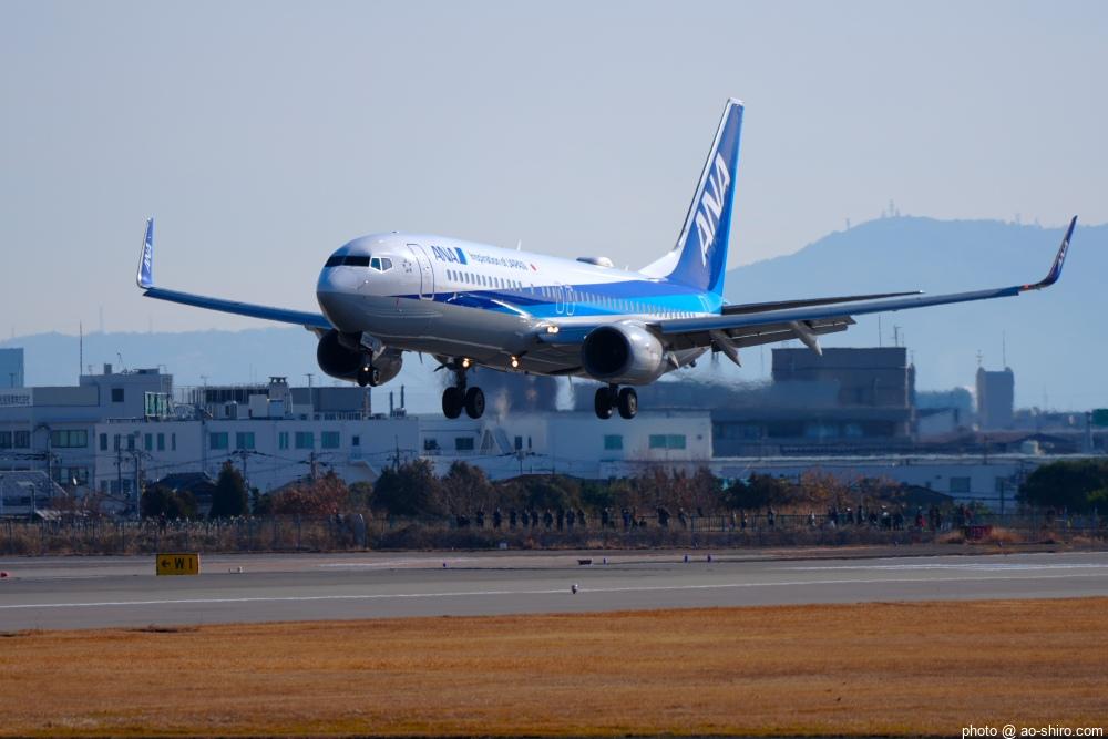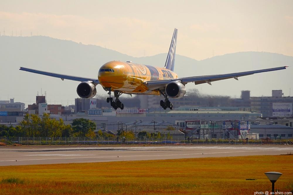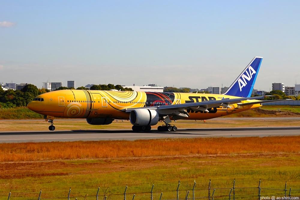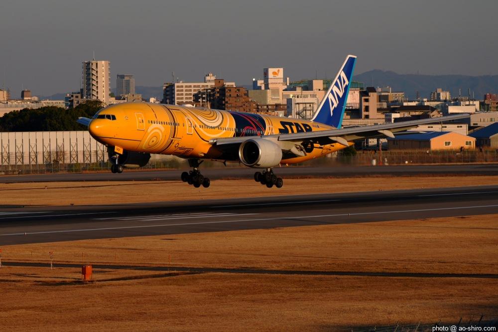 今回の主目的は、 3月の小松基地航空祭に向けて新カメラの使い方をマスターすることだったが、 3日後に就航を終える ” C-3PO ANA JET(以下、「C-3POJ」)がITMに飛来する最後の日だったので、ラストショットの撮影にも挑戦した。