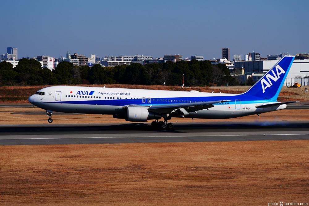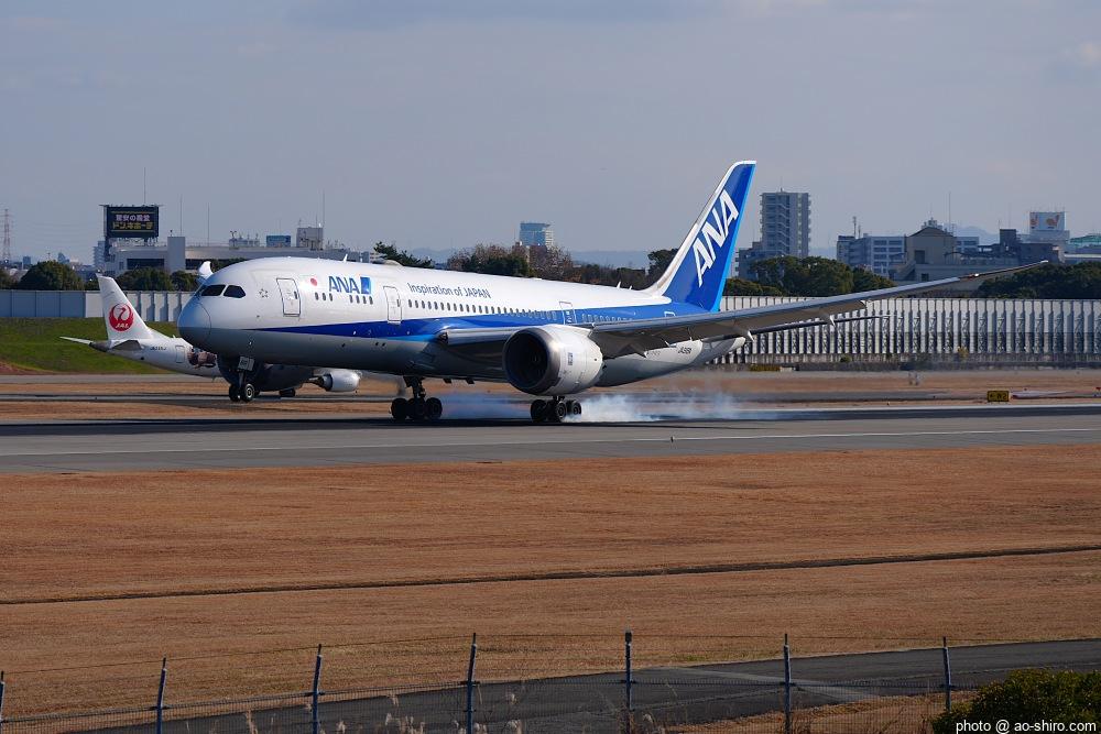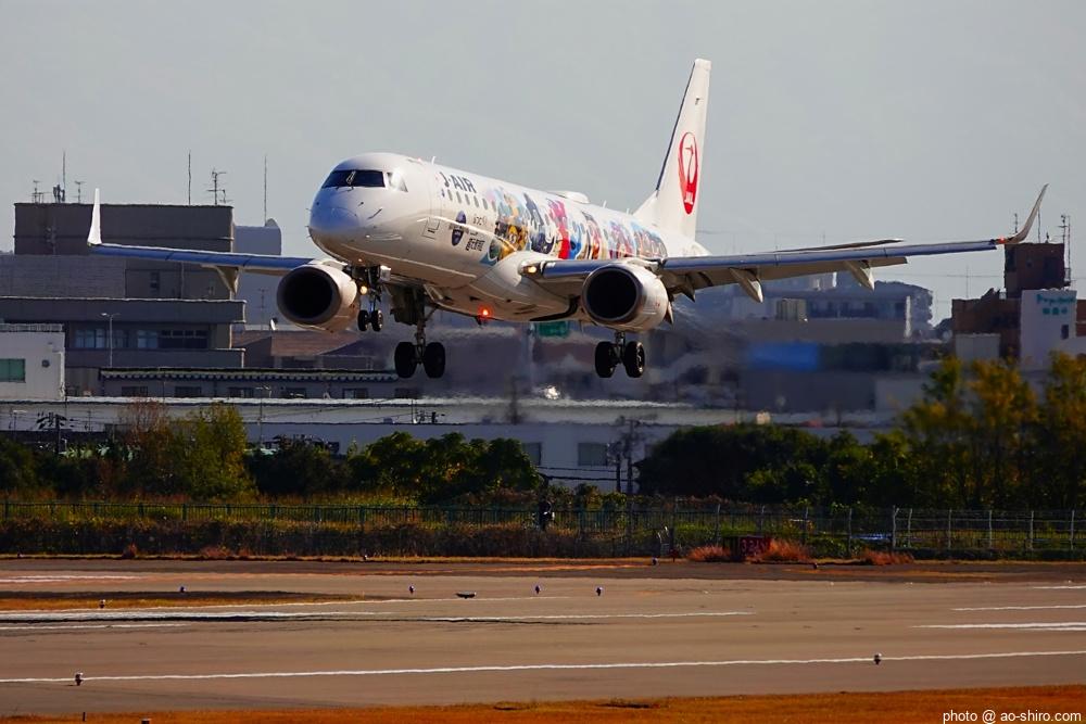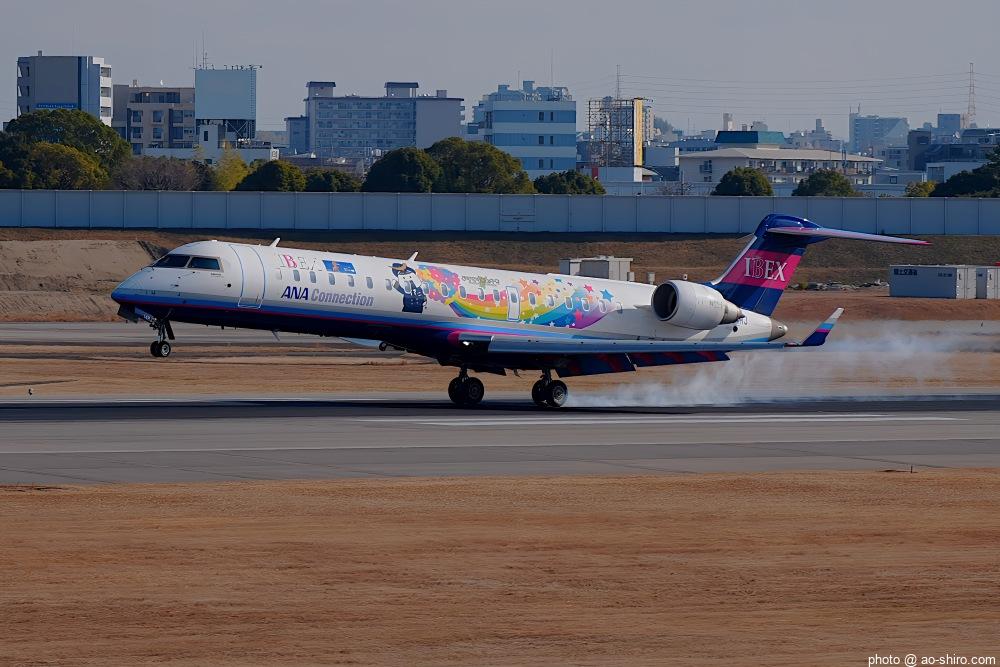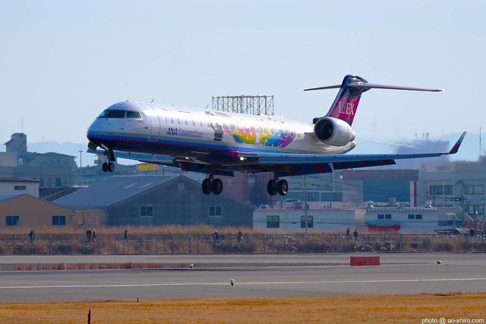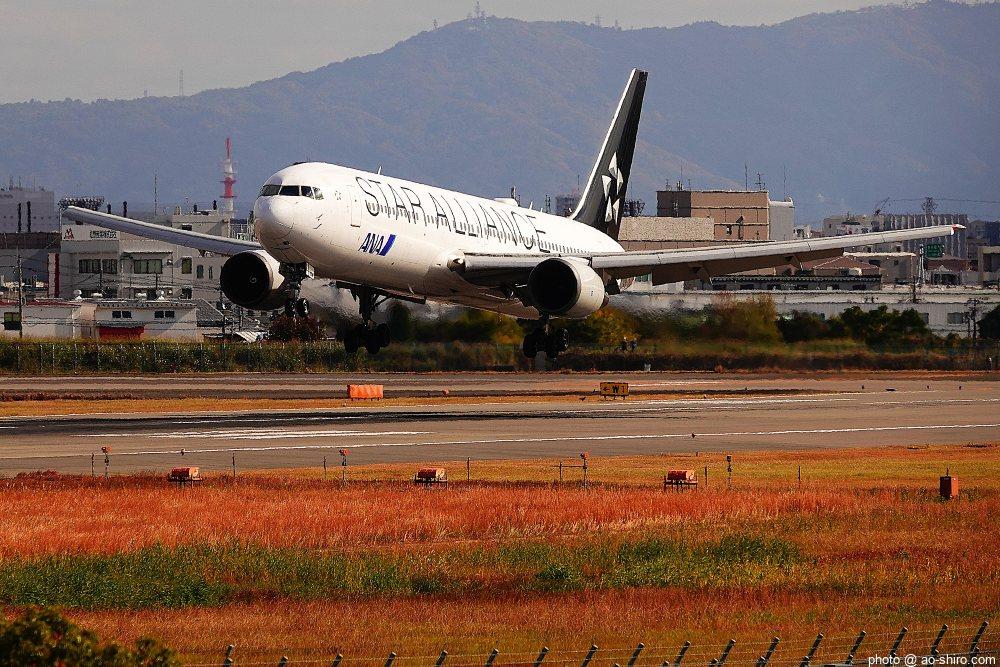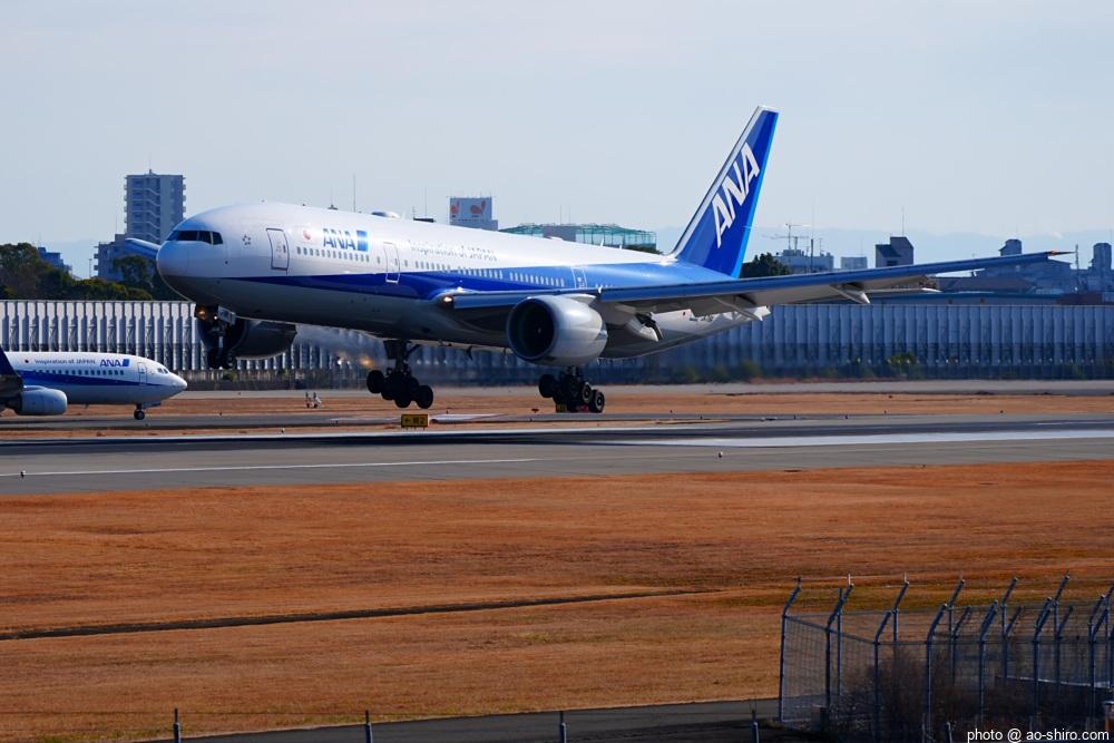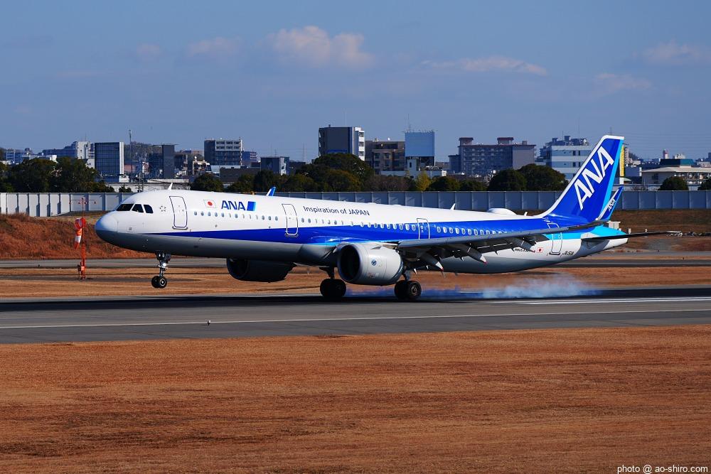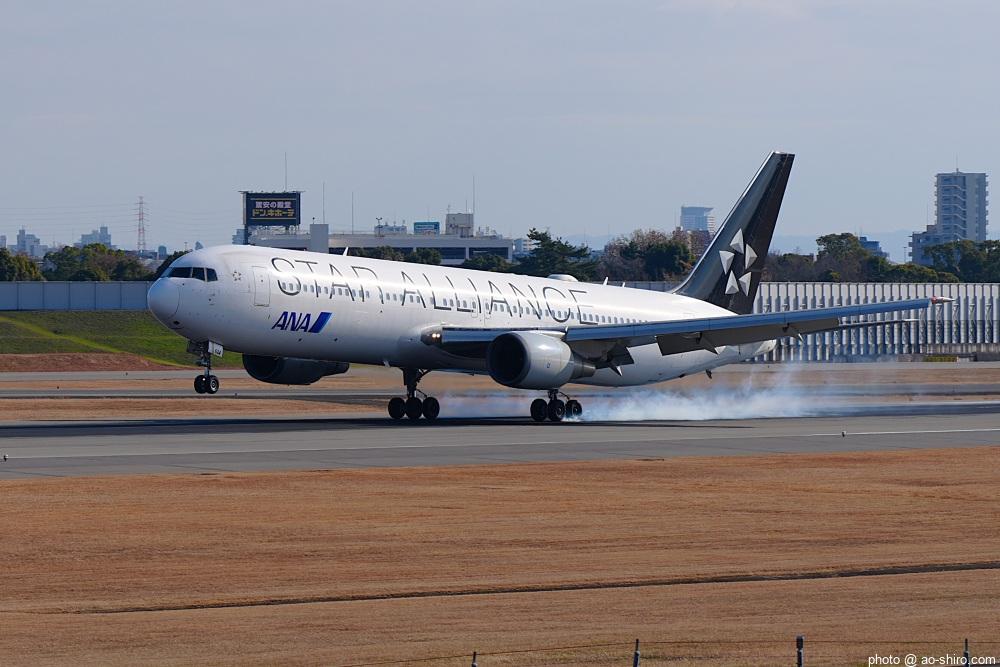 今回の主目的は、 3月の小松基地航空祭に向けて新カメラの使い方をマスターすることだったが、 3日後に就航を終える ” C-3PO ANA JET(以下、「C-3POJ」)がITMに飛来する最後の日だったので、ラストショットの撮影にも挑戦した。