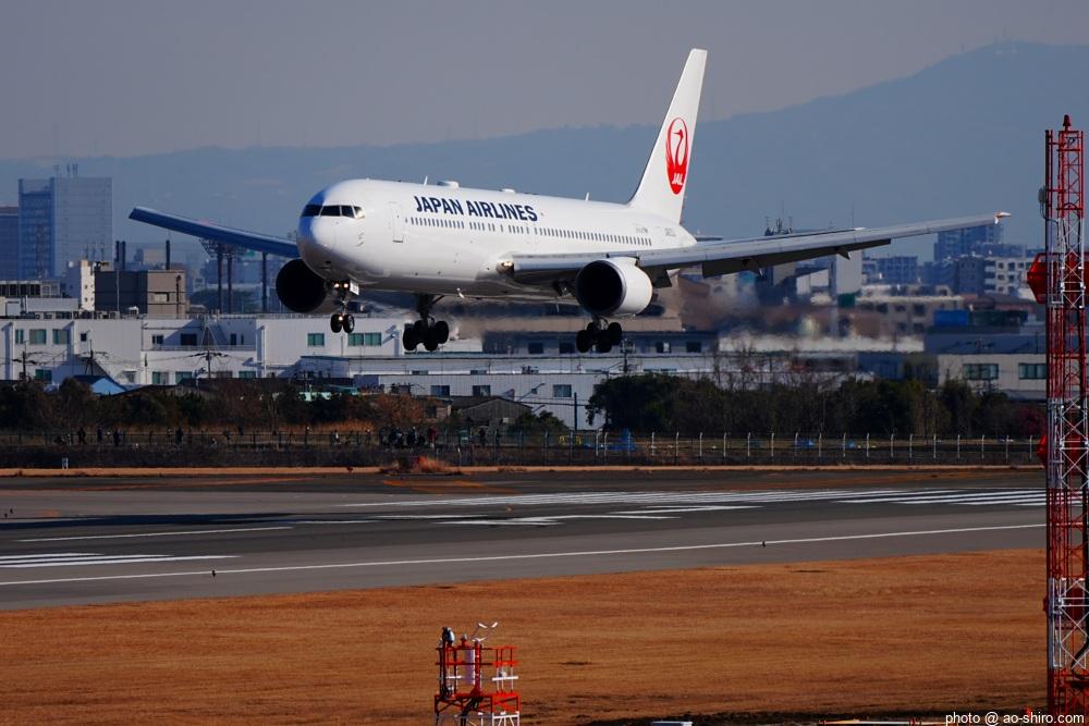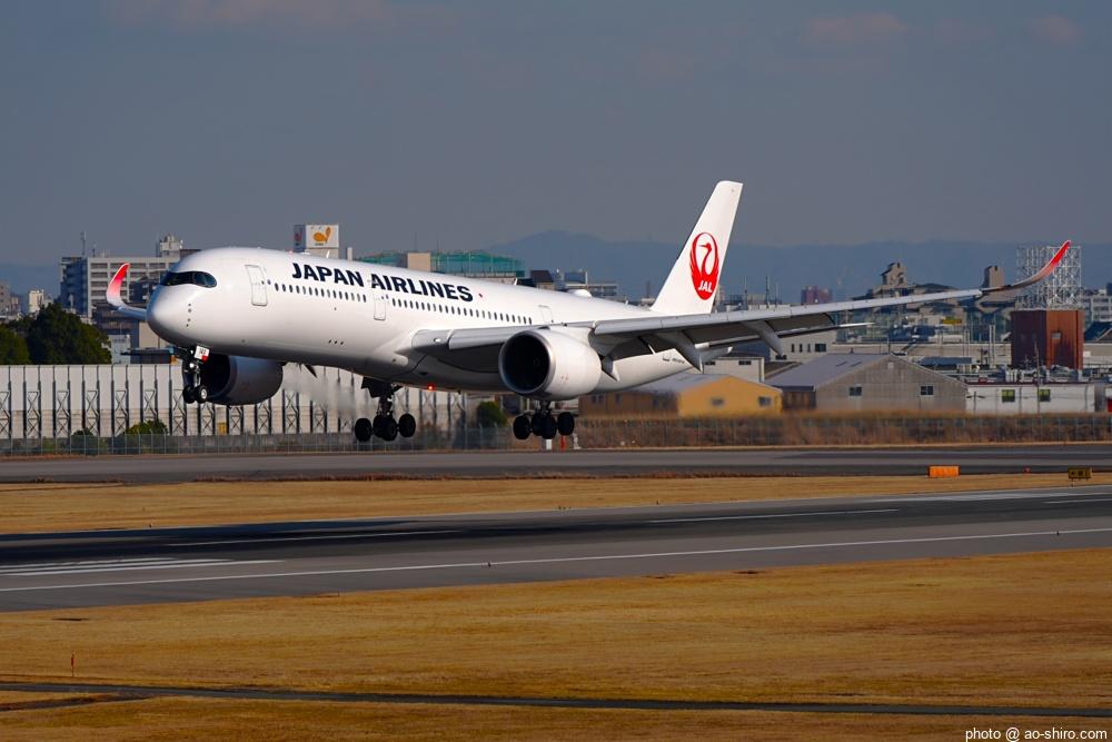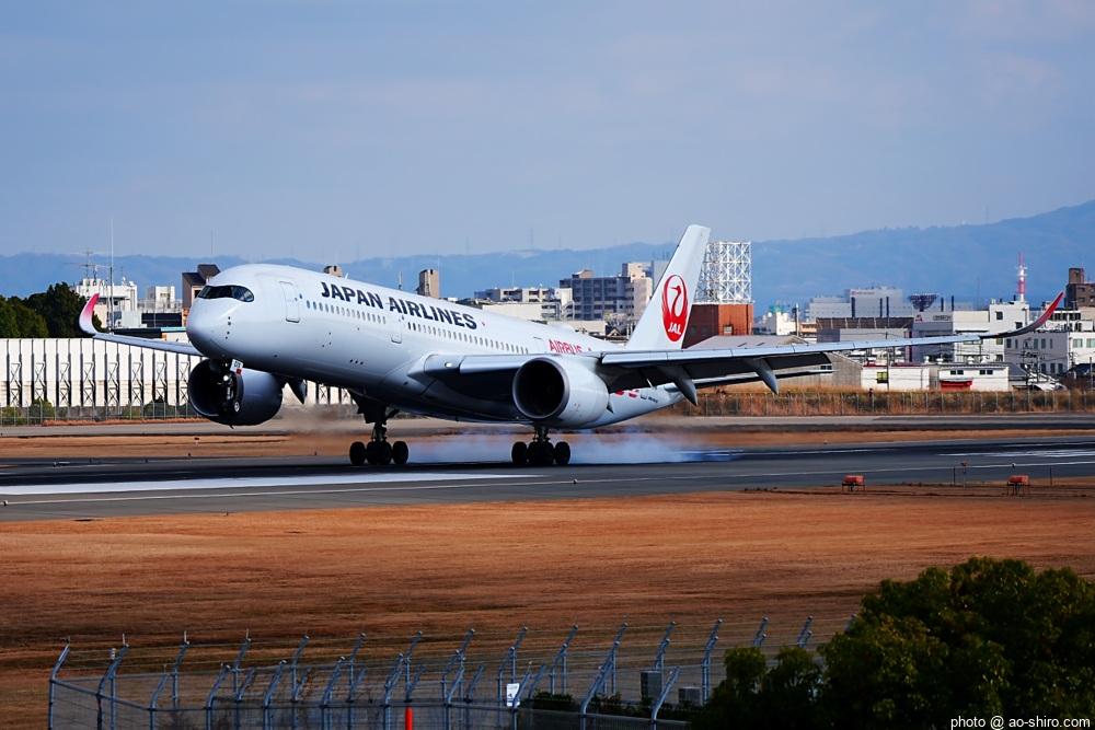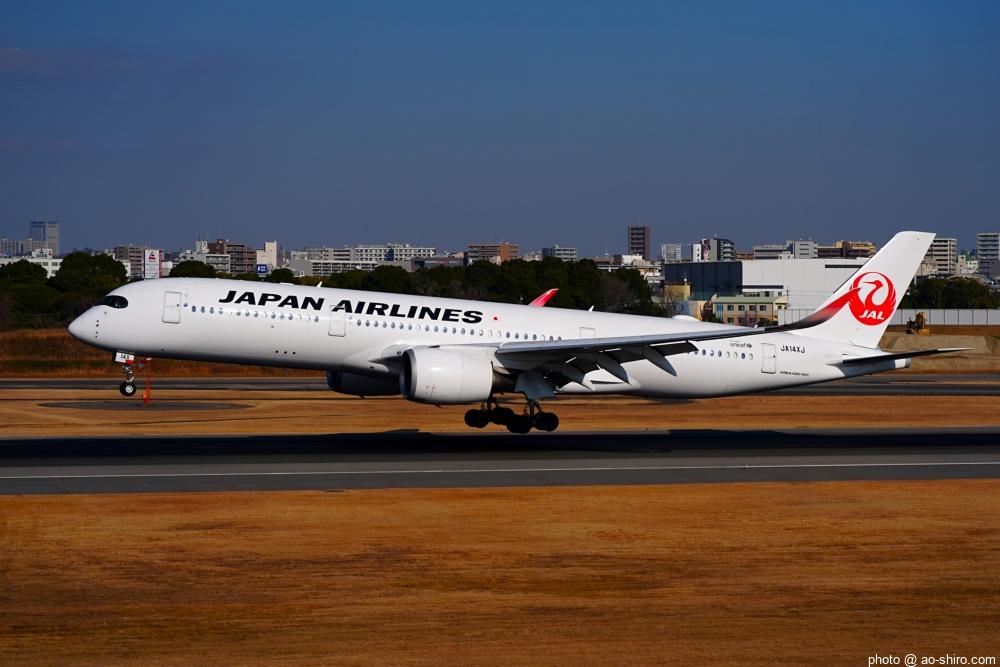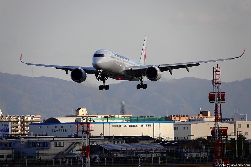 OKAを午後 2時10分に離陸するC-3POJのITM到着予定時間は、 3時55分。いつもなら、OKAから午後 2時前後にやってくるJALのA350を撮ったら帰るのだが、1回目のC-3POJの撮影に満足できなかったので、待つことに。到着がかなり遅れて 4時20分頃になってしまったが、西日を浴びて光輝く機体をカメラに収めることができてよかった。