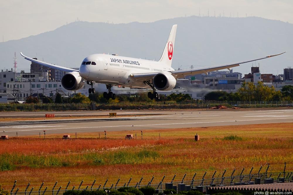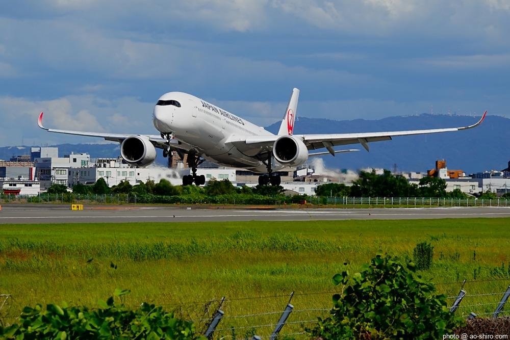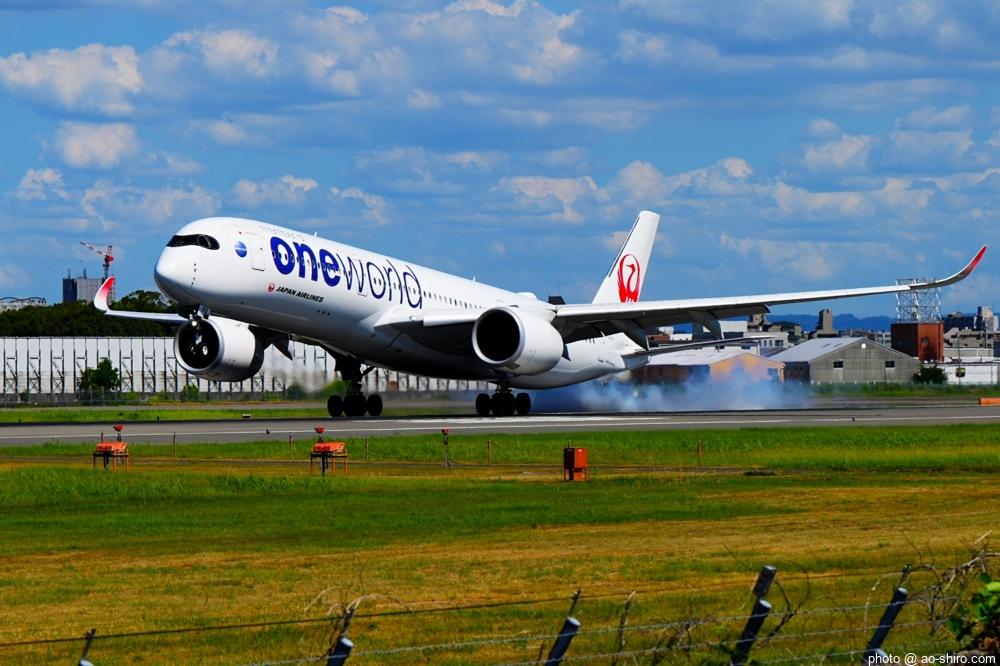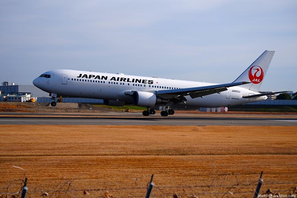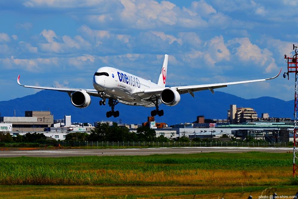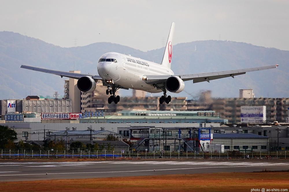 OKAを午後 2時10分に離陸するC-3POJのITM到着予定時間は、 3時55分。いつもなら、OKAから午後 2時前後にやってくるJALのA350を撮ったら帰るのだが、1回目のC-3POJの撮影に満足できなかったので、待つことに。到着がかなり遅れて 4時20分頃になってしまったが、西日を浴びて光輝く機体をカメラに収めることができてよかった。