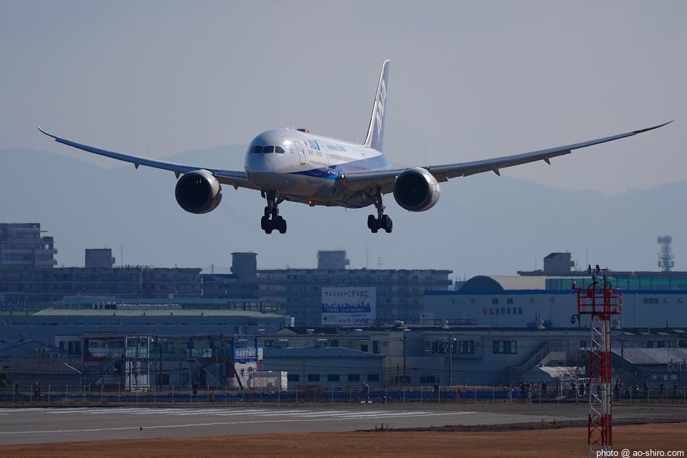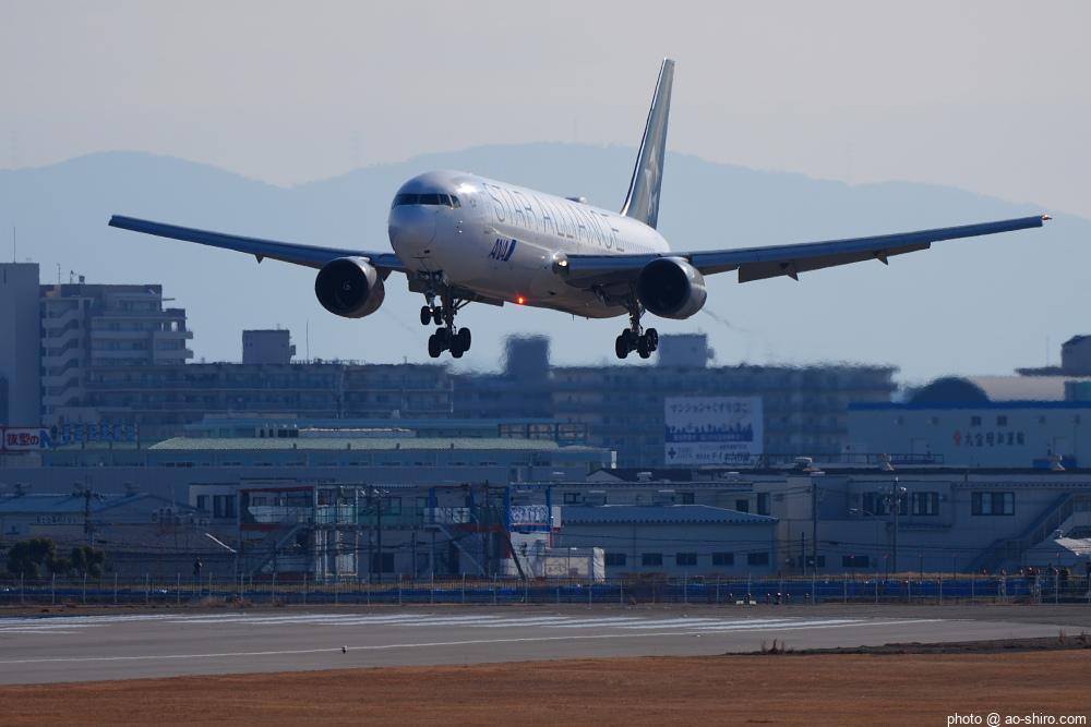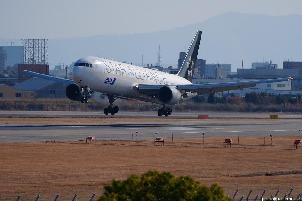 今回の主目的は、 3月の小松基地航空祭に向けて新カメラの使い方をマスターすることだったが、 3日後に就航を終える ” C-3PO ANA JET(以下、「C-3POJ」)がITMに飛来する最後の日だったので、ラストショットの撮影にも挑戦した。