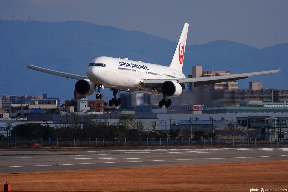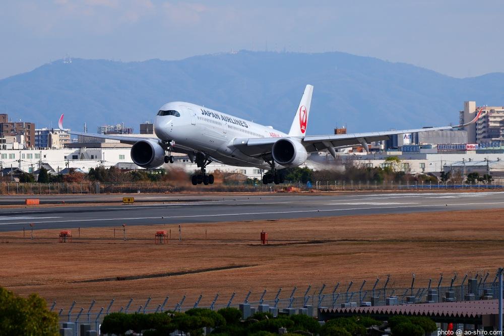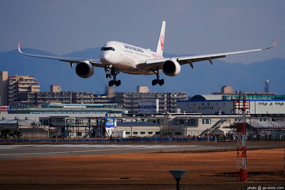 OKAを午後 2時10分に離陸するC-3POJのITM到着予定時間は、 3時55分。いつもなら、OKAから午後 2時前後にやってくるJALのA350を撮ったら帰るのだが、1回目のC-3POJの撮影に満足できなかったので、待つことに。到着がかなり遅れて 4時20分頃になってしまったが、西日を浴びて光輝く機体をカメラに収めることができてよかった。