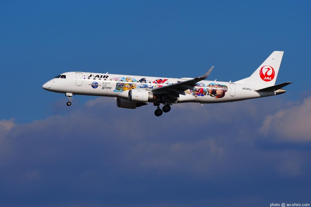HNDを 9時頃離陸したC-3POJは、10時17分頃に飛来。何度も撮っていた飛行機なので落ち着いて撮れたが、使用レンズの広角側が100mmなので、真横に来た機体の全景を撮ることができなかった。また、逆光気味だったので、ベストショットとは言えない出来だったのが残念。