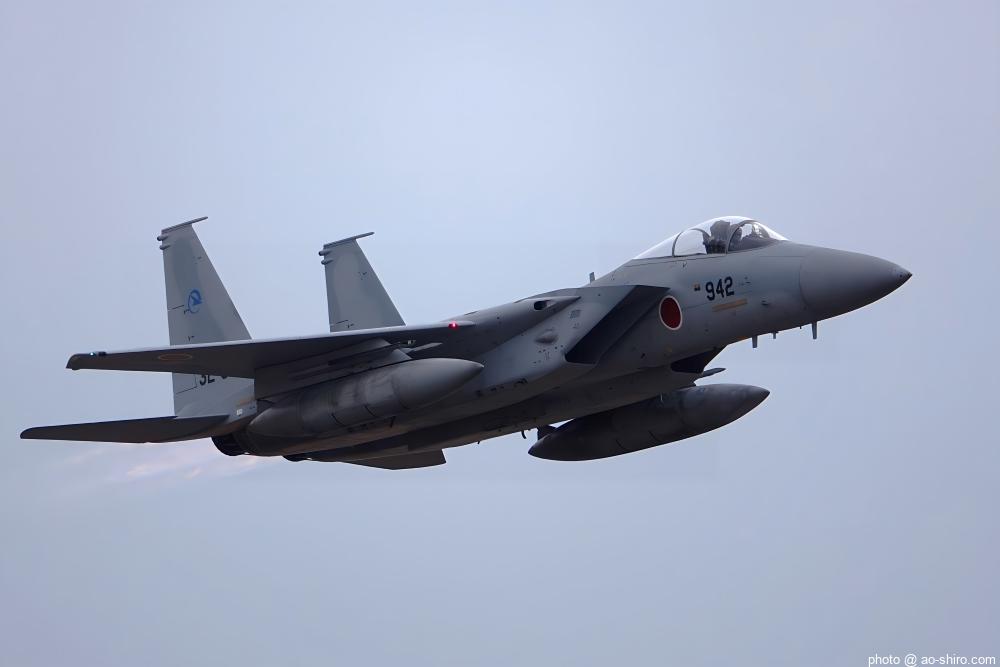 F-15Jは、背中見せ見せの ” 8の字旋回 ” などを披露してくれたが、モヤがかかった ” ボケボケ ” 写真の連発だった(トホホ)。