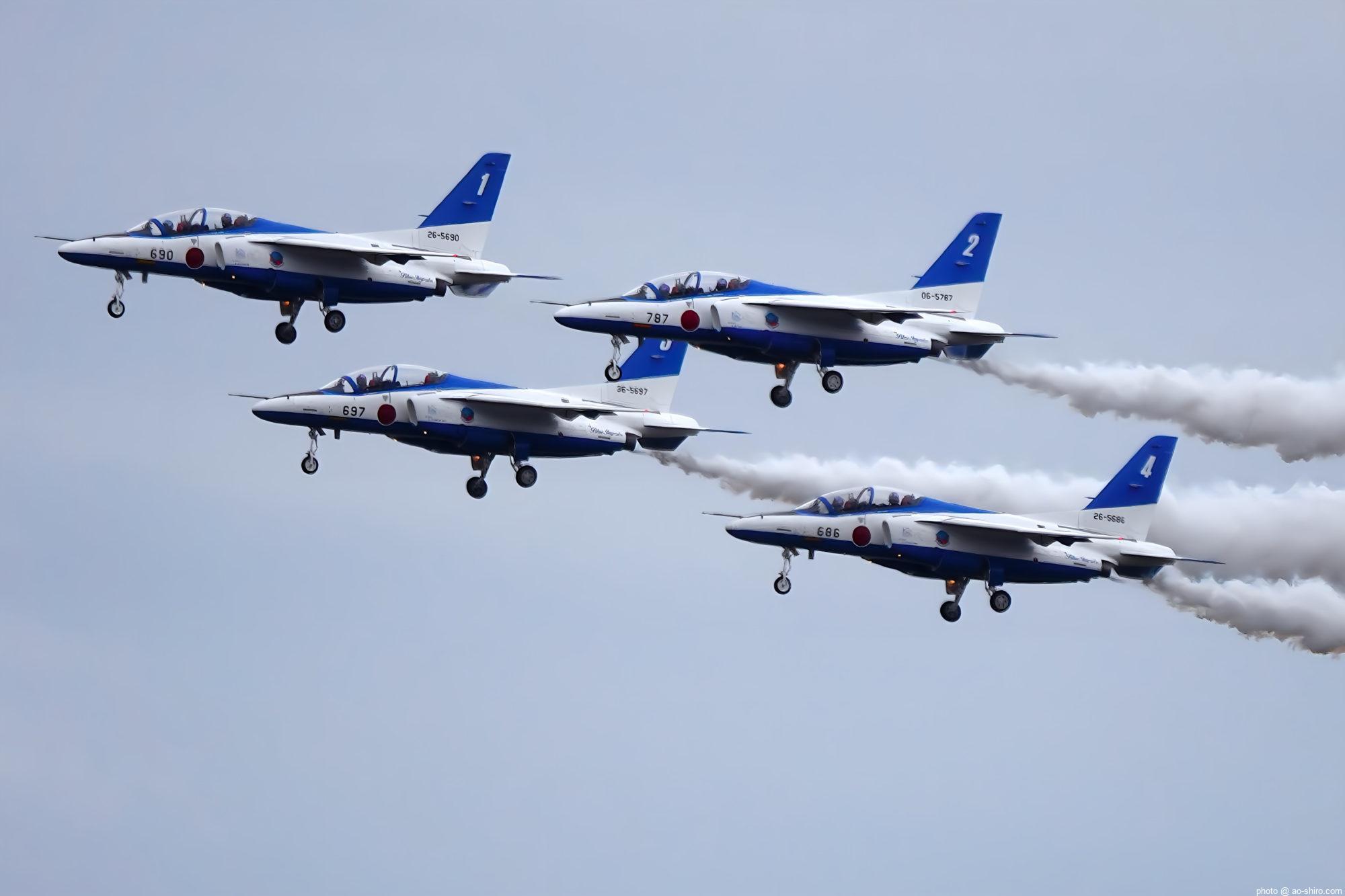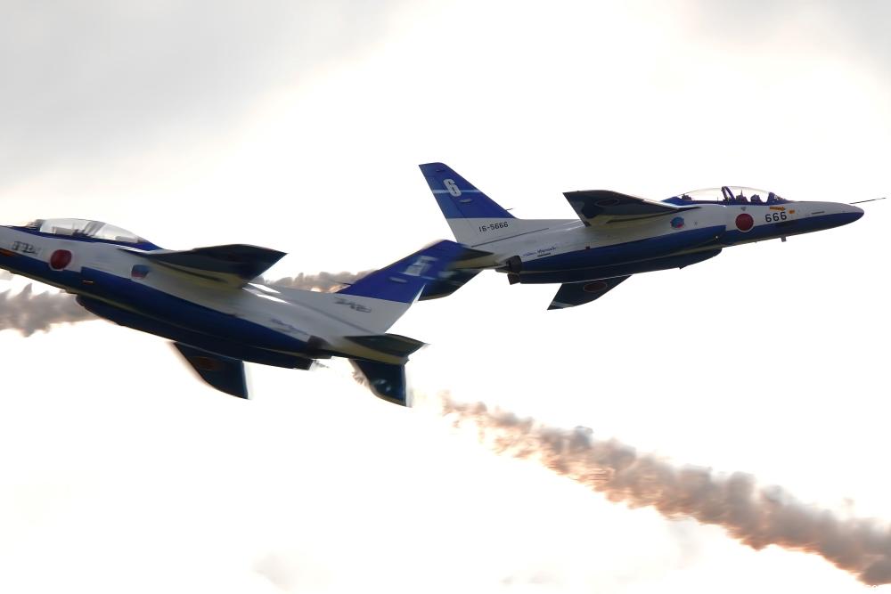 終日、曇天でメリハリのある写真は撮れなかったが、BIの「オポジット・コンティニアス・ロール」で 2機が交錯する瞬間や「ローリング・コンバット・ピッチ」で 4機が散開する場面をバッチリ撮れた。背景が青空だったら申し分なかったのに・・・。