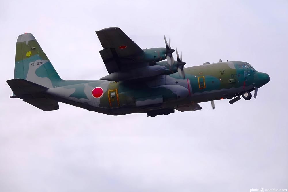 当初は、午後のプログラムで機動飛行をする予定だったが、天候悪化の予報から午前中に前倒しになった。おかげで、晴天下で背中もバッチリ撮ることができた。午後は、曇ってきてメリハリのある写真が撮りづらくなったが、それでも今年度で退役するC-1輸送機の試作機 ” 銀ちゃん ” や後輩のC-2輸送機の試作機の機動飛行も撮れたので、大満足。