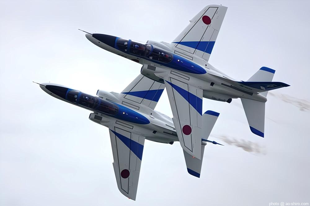 好天に恵まれてF-2Aの機動飛行を撮りきれて大満足だったが、さらに、地元の航空祭では地上展示だけだった芦屋基地所属のT-4中等練習機(70周年記念塗装機)