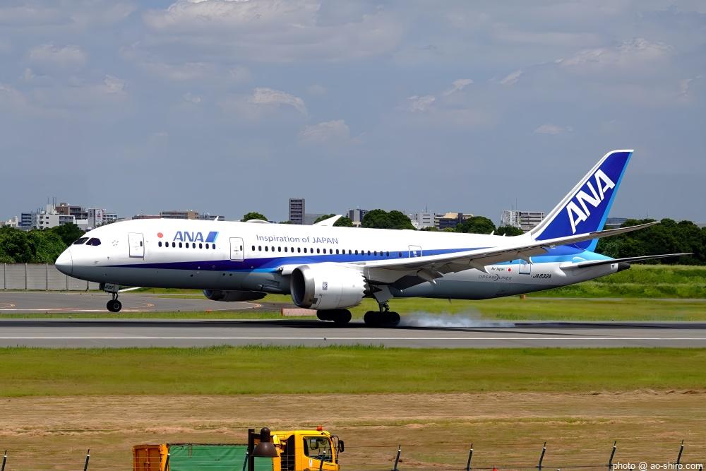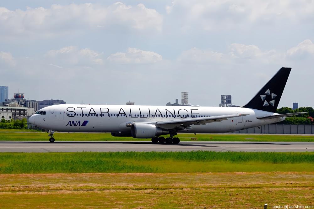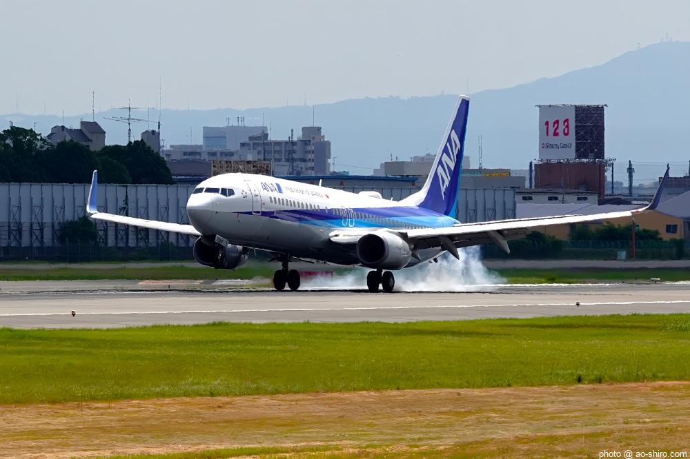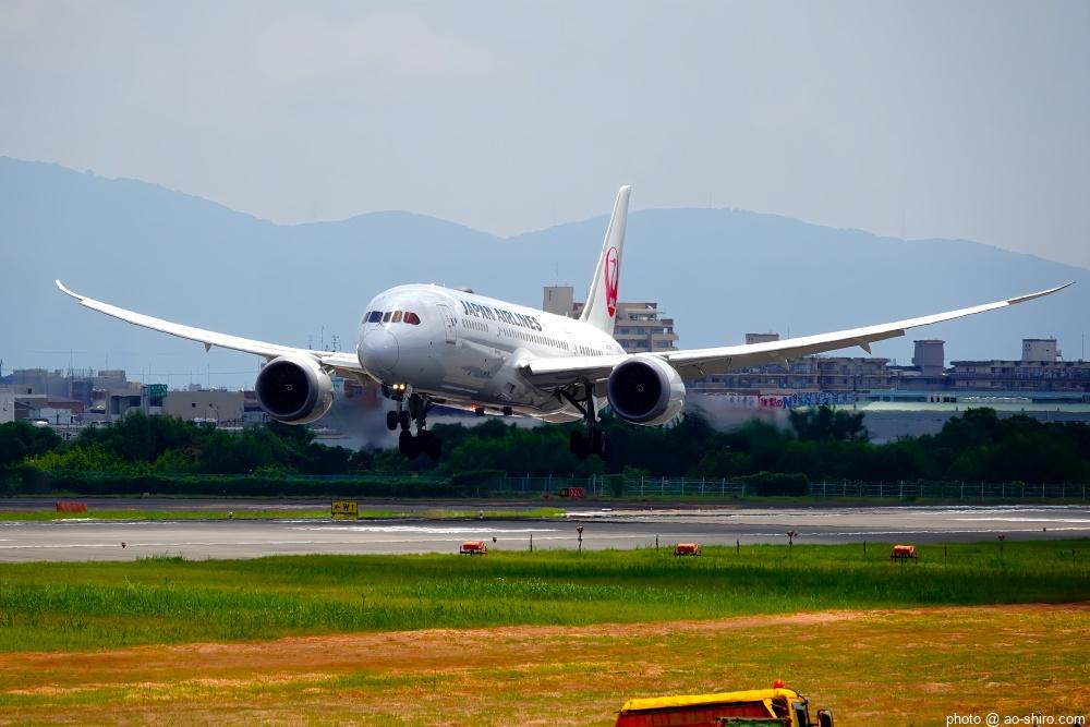 航空祭、救難活動の合間にも小松空港を利用する旅客機の離発着があった。